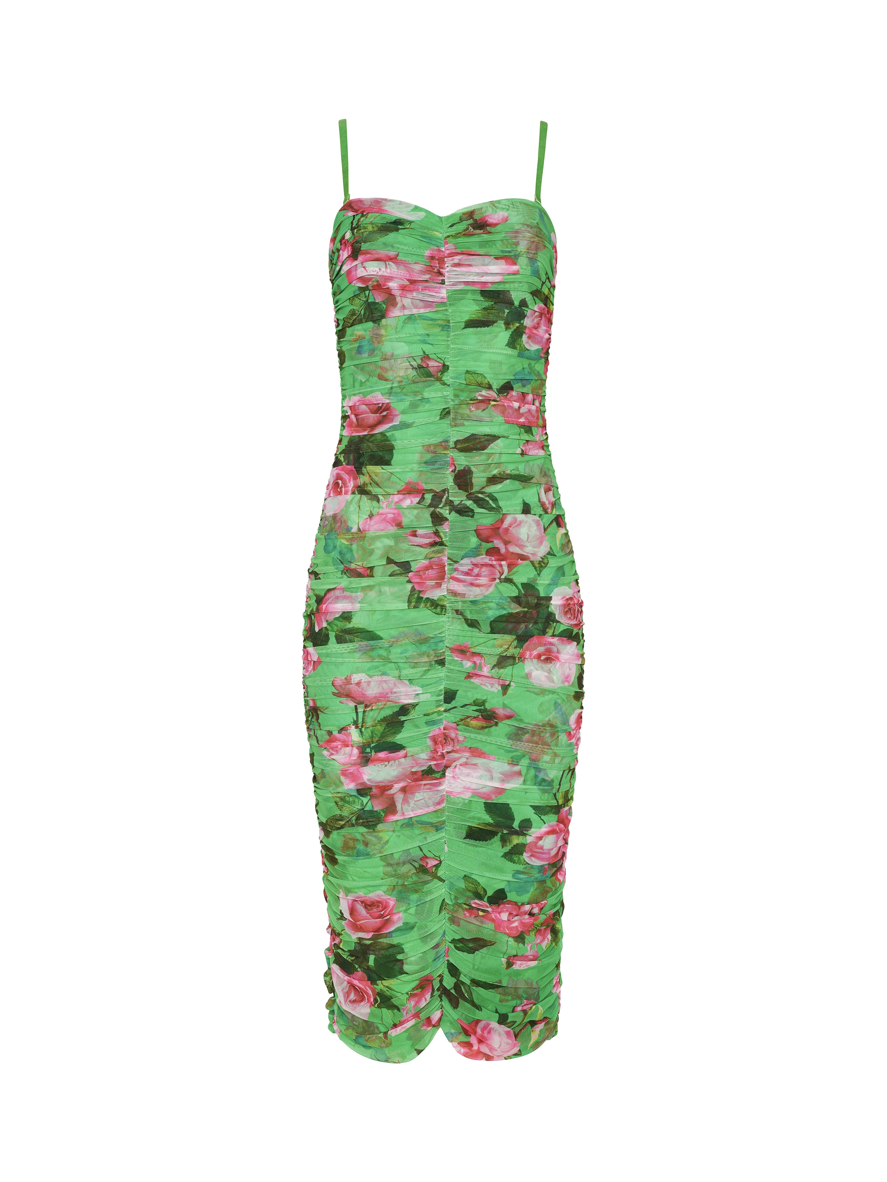 Style No. 61288RRK-GSAG DETAILS & FIT - Model Details: Height 5'10" | Bust 32" | Waist 23.5" | Hips 34.5" | Wearing Size 2 - About 36.25" From Shoulder to Hem MATERIALS & CARE Composition - 90% Nylon 10% Spandex - Imported Care - Dry clean only - Do not wash - No bleach - No tumble dry - Low iron if needed