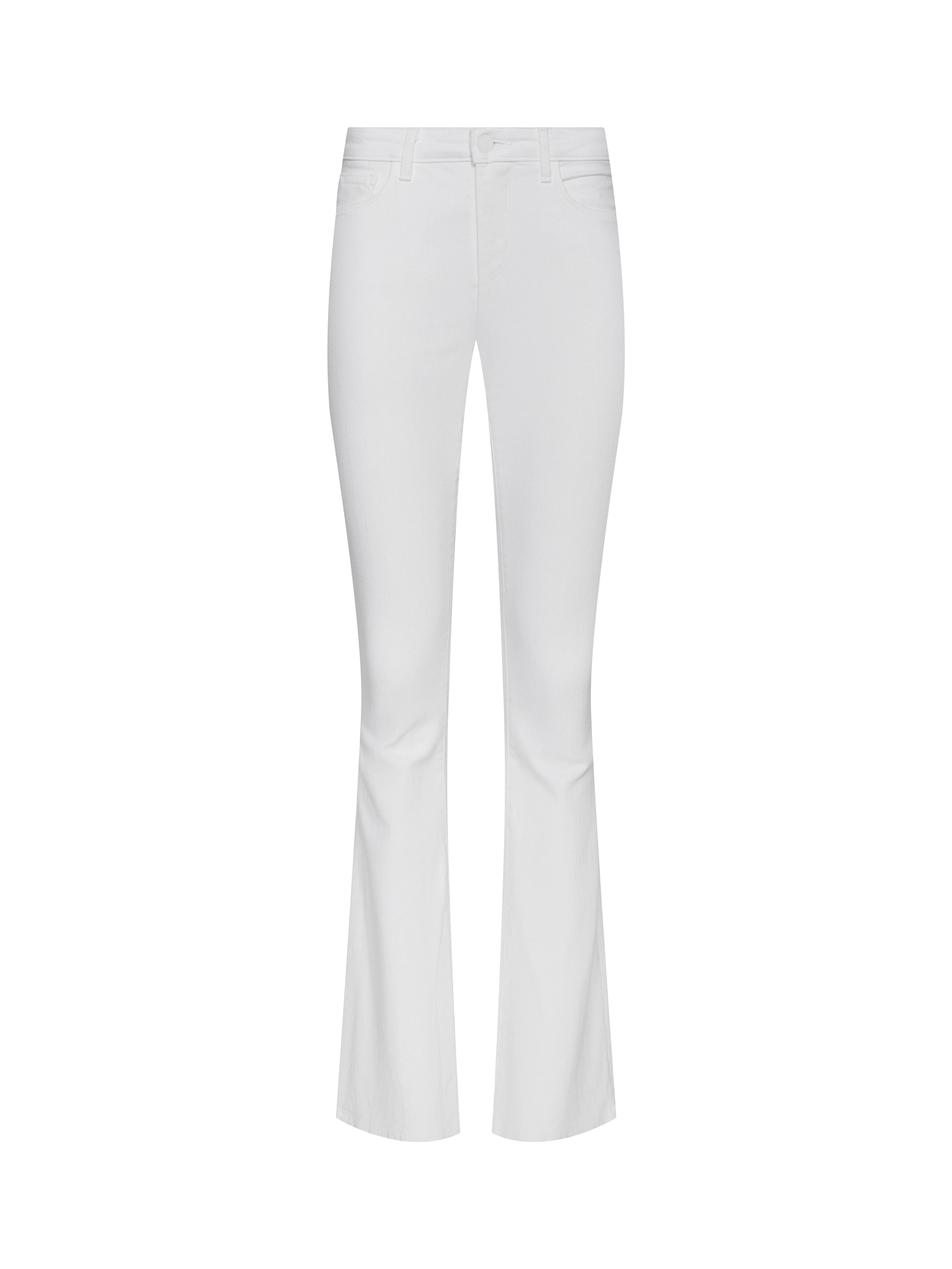 Our signature bootcut jean is back in a lower rise. Designed with a waistband that offers full coverage in the back and dips slightly lower the natural waist in front, the Cara will be your most versatile go-to. Now in white. • Subtle stretch denim • Low rise • 5-pocket design • Zip fly and button closure Style No. 2968KBO-BLAN DETAILS & FIT - Model Details: Height 5'9" | Bust 32" | Waist 24" | Hips 34" | Wearing Size 25 - Rise: 8.5" - Inseam: 33" - Leg Opening: 19" MATERIALS & CARE Composition - 98% Cotton 2% Spandex - Made in Los Angeles Care - Machine wash