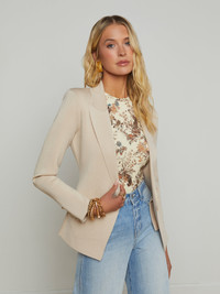 The ultimate single-breasted blazer, now in a neutral knit. • Lightweight stretch knit • Strong shoulders • Flap pockets • Embossed dome button closure Style No. 80034NXT2-CHGL DETAILS & FIT - Model Details: Height 5'9" | Bust 32" | Waist 24" | Hips 34" | Wearing Size XS - About 26.8" From Shoulder to Hem - Sleeve Length: 22.75" MATERIALS & CARE Composition - 80% Rayon 18% Nylon 2% Spandex - Imported Care - Dry clean only