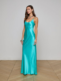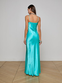 Style No. 61460CHM-LAGO DETAILS & FIT - Model Details: Height 5'10" | Bust 32" | Waist 23.5" | Hips 34.5" | Wearing Size 2 - About 55.4" From Shoulder to Hem MATERIALS & CARE Composition - 100% Silk - Imported Care - Dry clean only - Do not wash - No bleach - No tumble dry - Low iron if needed