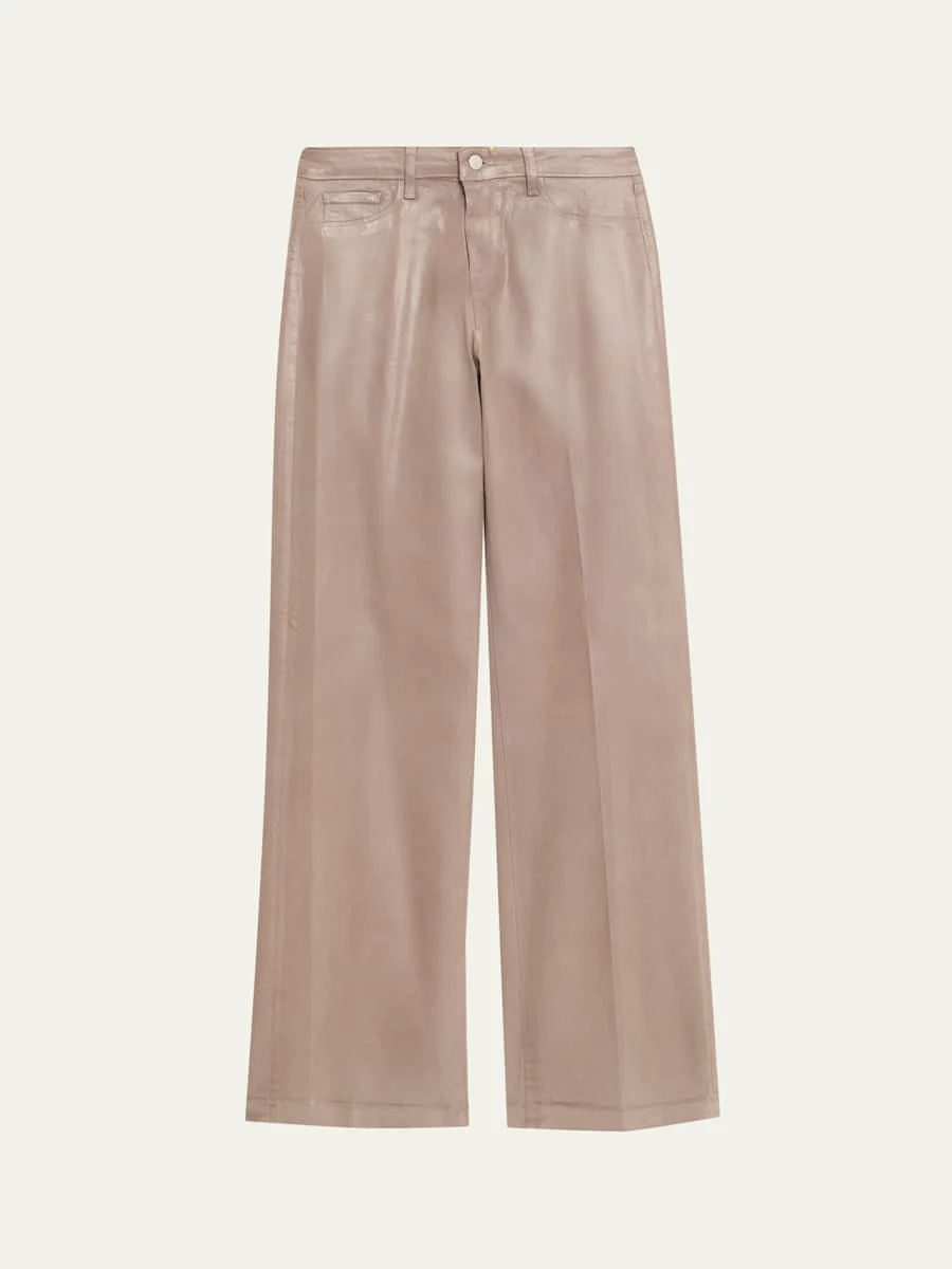 L'Agence "Clayton" wide-leg jeans in coated black stretch-denim Approx. 35" inseam High rise Faux front pockets; back patch pockets Straight fit Full length Button/zip fly; belt loops Cotton/polyester/spandex Made in USA Model is 5'10"/177cm. Online Inquiries: BGS21_T64TV| Store Inquiries: #4902848
