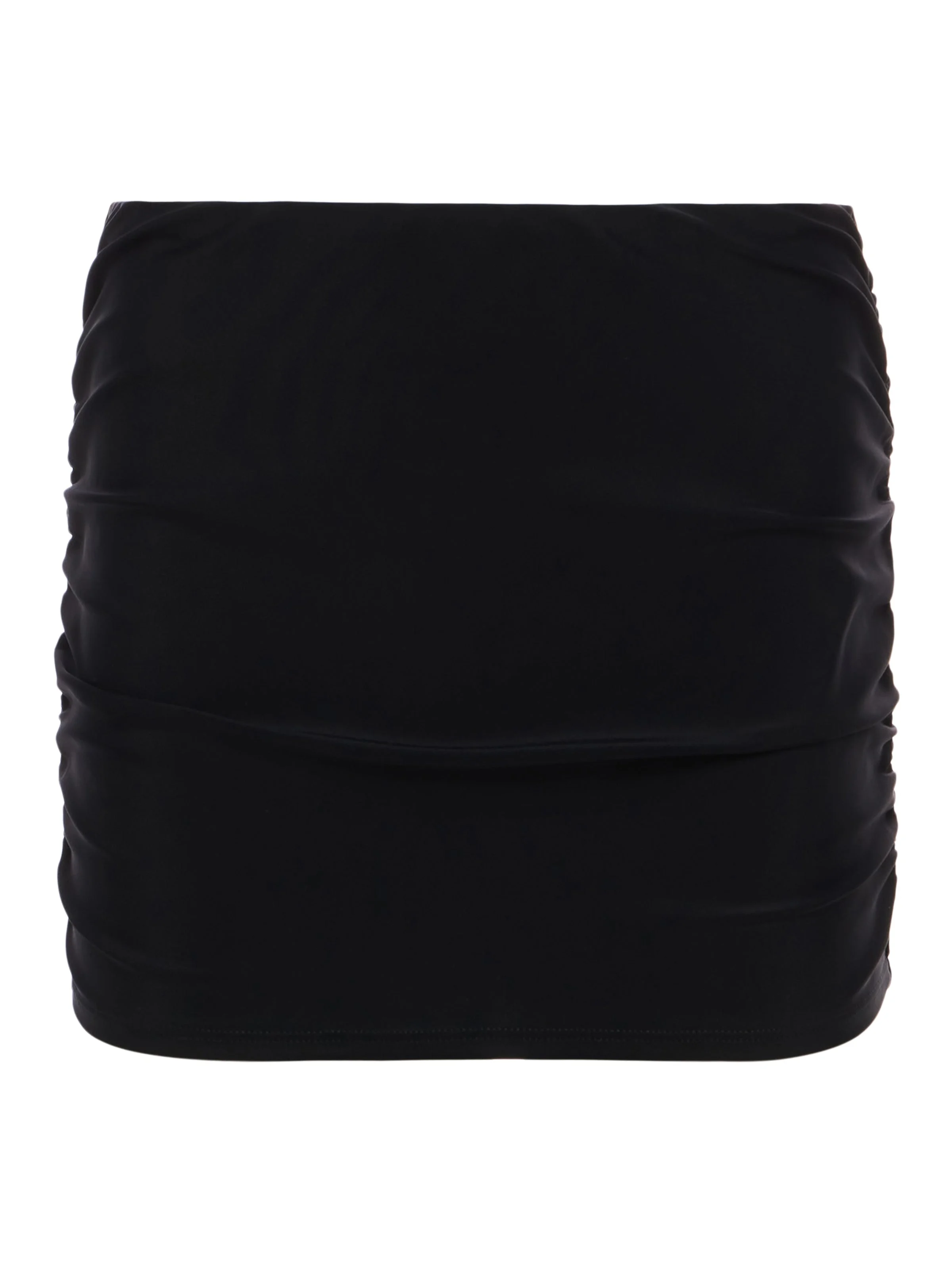 The Coco mini skirt is a beach to pool must-have—in and out of the water. Cut from the same flattering fabric as our swimsuits, the Coco is fully waterproof. Side-ruching creates a sexy, body-skimming fit. For days when you want a little more coverage, slip it on over a coordinating bikini bottom before heading to the pool. If you’re looking for an elevated yet practical outfit solution for the beach or the boat, pair the Coco with an oversized button-down or white tee. Style No. LG4MJ41-BLAC DETAILS & FIT - Model Details: Height 5'10" | Bust 32" | Waist 24'' | Hips 34.5'' | Wearing Size XS - About 12.5" From Waist to Hem MATERIALS & CARE Composition - 80% Nylon 20% Elastane - Imported