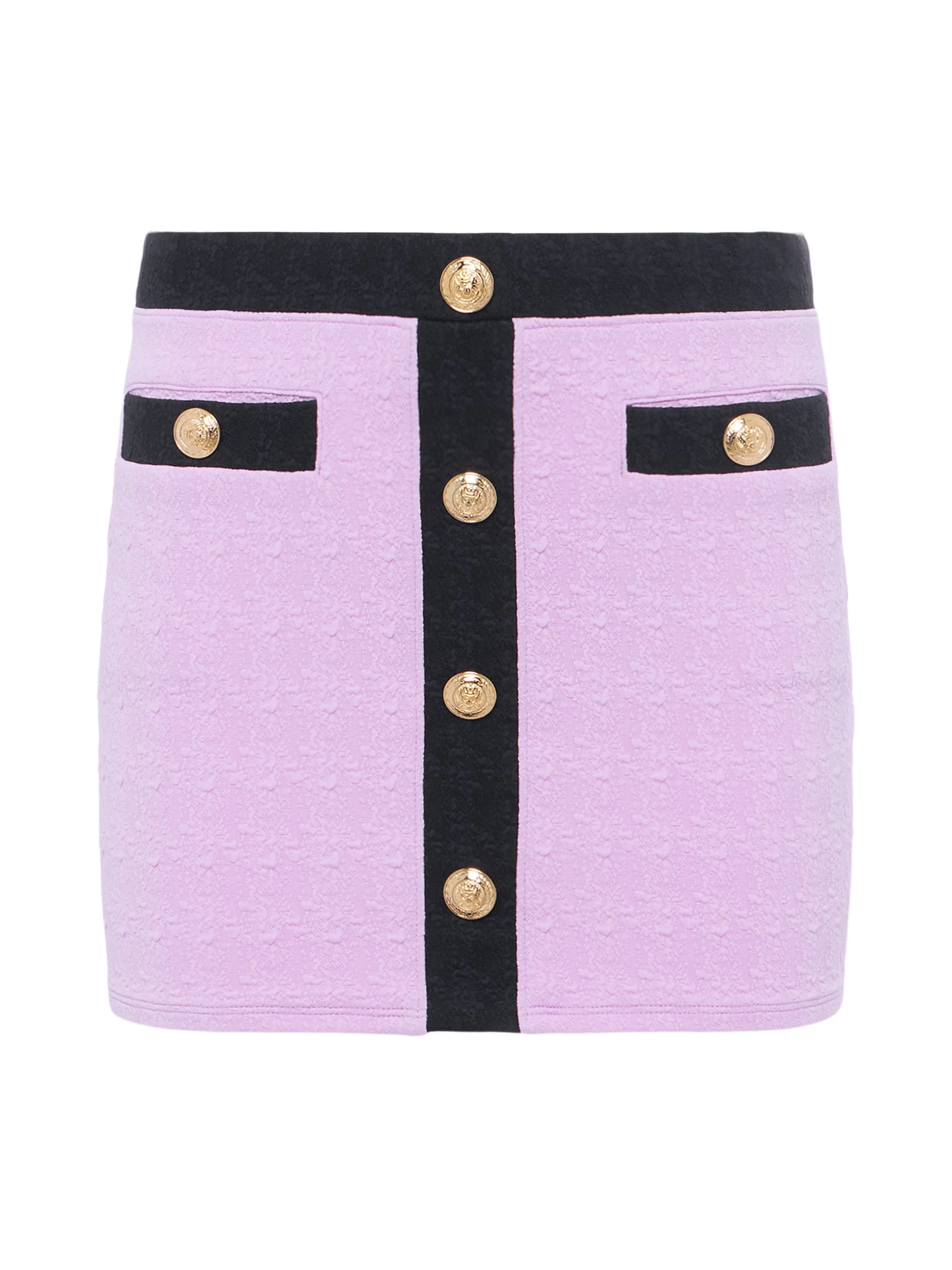 She’s a skirt and a cover-up, back in a light violet colorway. Constructed with fully water-safe fabrics, the Coco is perfect for when you want a little more coverage in or out of the pool—or for wearing with a classic white tee. • Water-safe textured boucle fabric • Decorative embossed dome buttons Style No. LG5AM41-LVBK DETAILS & FIT - Model Details: Height 5'10" | Bust 32" | Waist 24" | Hips 34.5" | Wearing Size XS - About 12.5" From Waist to Hem MATERIALS & CARE Composition - 93% Nylon 7% Spandex - Imported