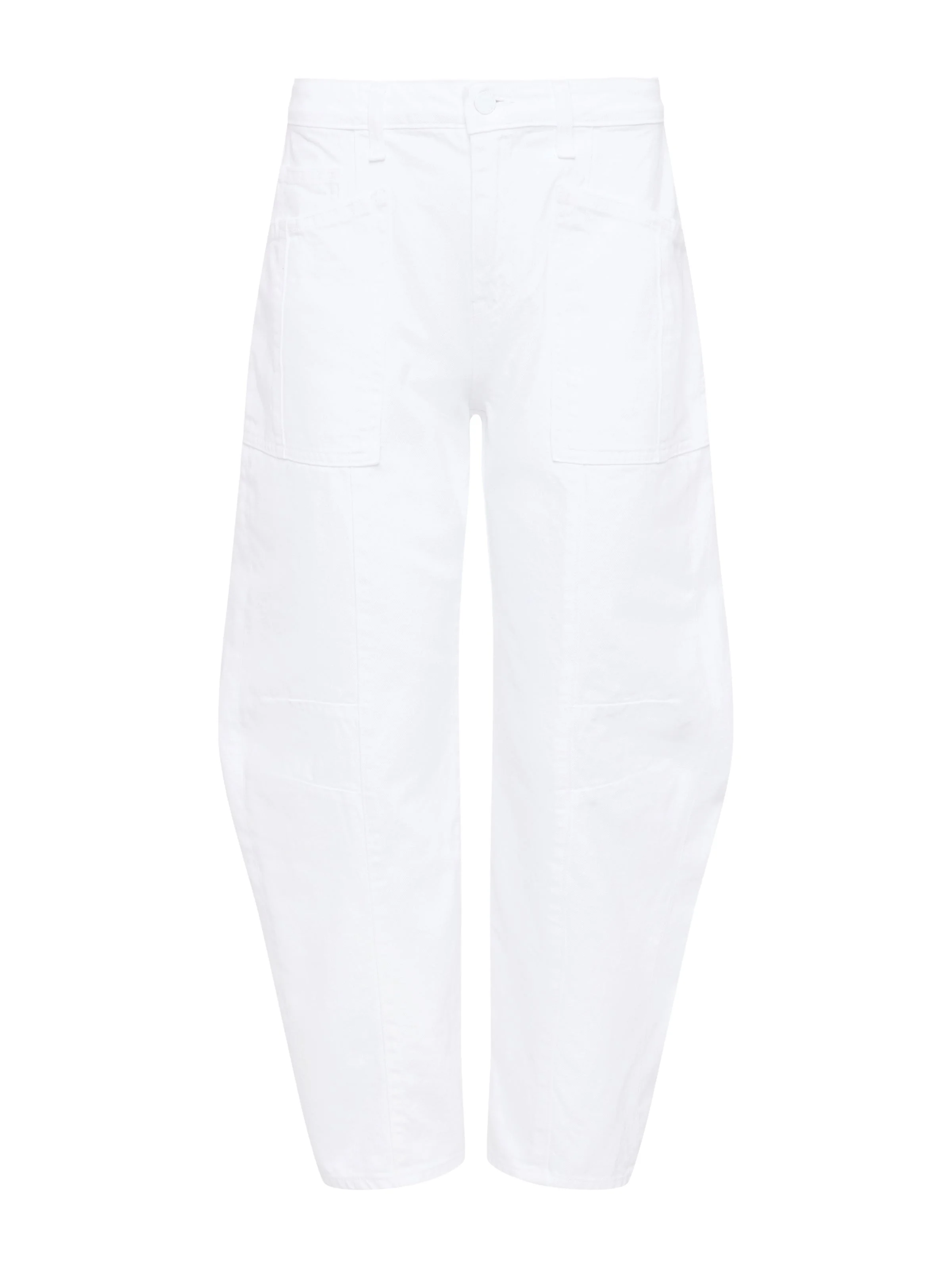 The L’AGENCE take on the barrel-leg jean, now in white. Constructed from incredibly soft denim, the Cody features novel patch pockets and knee darts for a defined shape that tapers toward the ankle. • All-cotton denim • High rise • Zip fly with button closure Style No. 2961KDW-BLAN DETAILS & FIT - Model Details: Height 5'9" | Bust 30" | Waist 24" | Hips 34" | Wearing Size 25 - Rise: 11.25" - Inseam: 26" - Leg Opening: 17" MATERIALS & CARE Composition - 100% Cotton - Made in Los Angeles Care - Machine wash