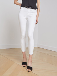 Our signature high-rise skinny jean crafted from premium, luxurious stretch denim in crisp, clean white. Tapered leg hugs from hip to ankle, while the contoured waistband defines and slims the natural waist. High-recovery fabric holds its shape, smoothing the silhouette without sacrificing comfort. Style No. 2294LMD-BLAN DETAILS & FIT - Model Details: Height: 5’10" | Bust 34” | Waist 24" | Hips 35” | Wearing Size 25 - Rise: 9.5" - Inseam: 26" - Leg Opening 9.5" MATERIALS & CARE Composition - 86% Cotton, 11% Elastane, 3% Spandex - Made in Los Angeles Care - Machine wash