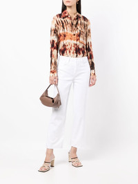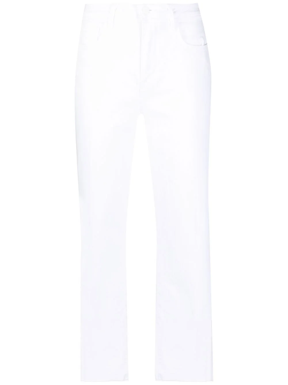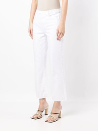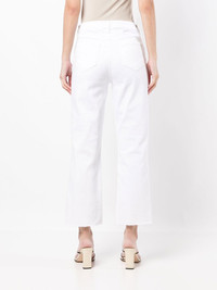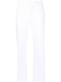 cropped straight-leg jeans white cotton blend straight leg cropped high-waisted front button and zip fastening classic five pockets Made in United States Composition Outer: Cotton 98%, Spandex/Elastane 2% Lining: Polyester 65%, Cotton 35% SIZE & FIT Model measurements Height 5 ft 10 in(1.78 m) Bust/Chest 30.31 in(77 cm) Hips 34.64 in(88 cm) Waist 25.59 in(65 cm) FittingInformation This piece fits true to size. We recommend you get your regular size Designed to be fitted at the waist, loose over the leg Made with a mid-weight stretch fabric
