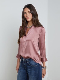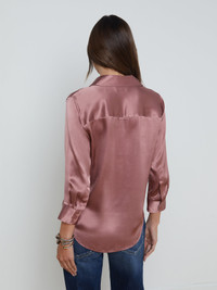 Meet the iconic silk button-down that belongs in every wardrobe. Our signature three-quarter sleeve shirt is back in a soft mauve rose. • 100% silk charmeuse • Three-quarter sleeves • High-low shirttail hem • 2-button cuffs • Front button closure Style No. 40126CLW-MARO DETAILS & FIT - Model Details: Height 5'10" | Bust 32" | Waist 24'' | Hips 34.5'' | Wearing Size XS - About 26" From Shoulder to Hem - Sleeve Length: 19.2" MATERIALS & CARE Composition - 100% Silk - Imported Care - Dry clean only - Do not wash - No bleach - No tumble dry - Low iron if needed