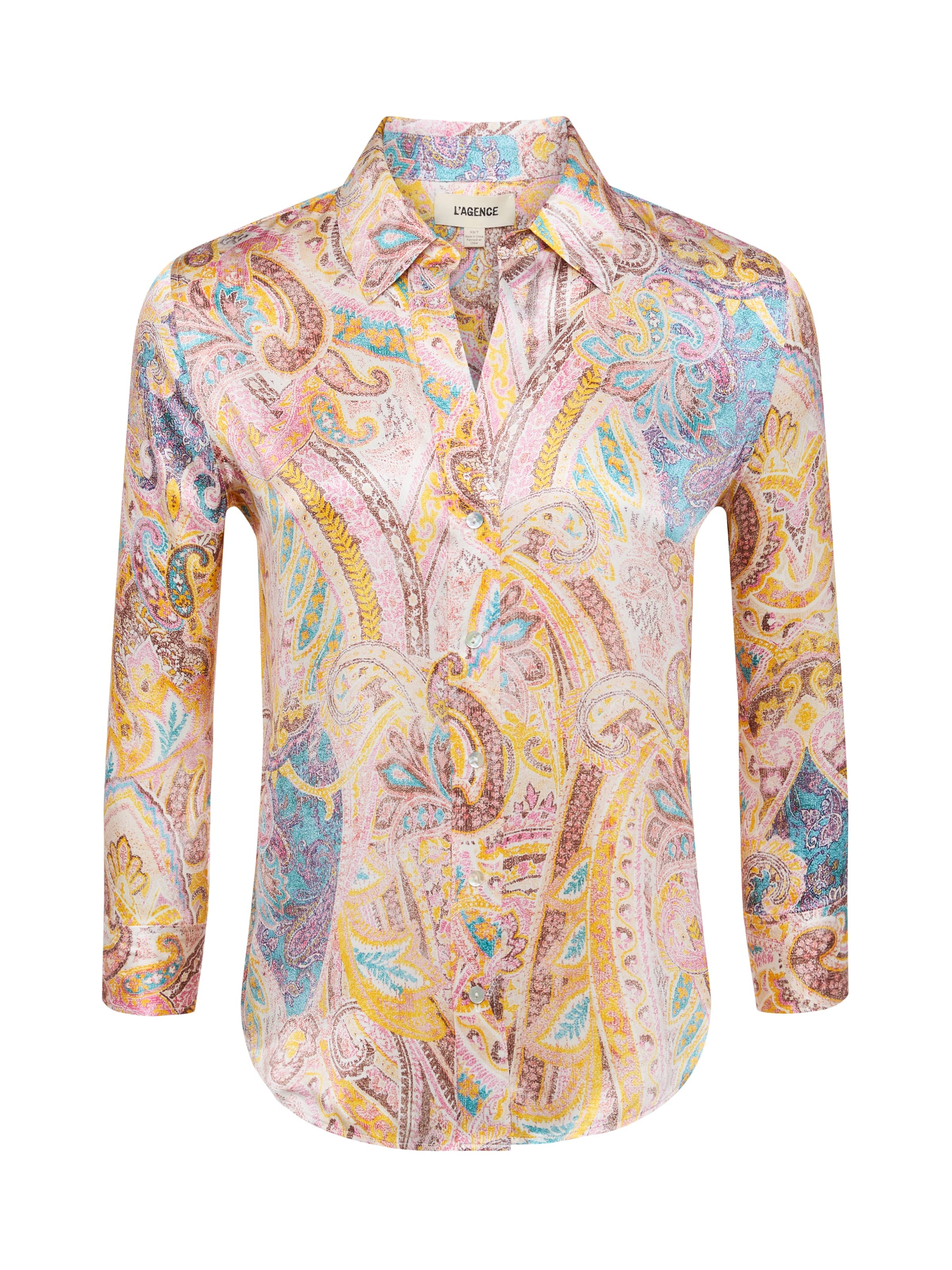 Style No. 40126WPN-MWPP DETAILS & FIT - Model Details: Height 5'10" | Bust 32" | Waist 23.5" | Hips 34.5" | Wearing Size XS - About 26" From Shoulder to Hem - Sleeve Length: 19.2" MATERIALS & CARE Composition - 100% Silk - Imported Care - Dry clean only - Do not wash - No bleach - No tumble dry - Low iron if needed