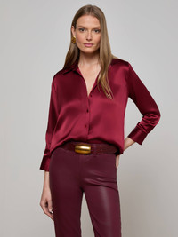 Style No. 40126CLW-BLCH DETAILS & FIT - Model Details: Height 5'8" | Bust 32" | Waist 24.5" | Hips 34" | Wearing Size XS - About 26" From Shoulder to Hem - Sleeve Length: 19.2" MATERIALS & CARE Composition - 100% Silk - Imported