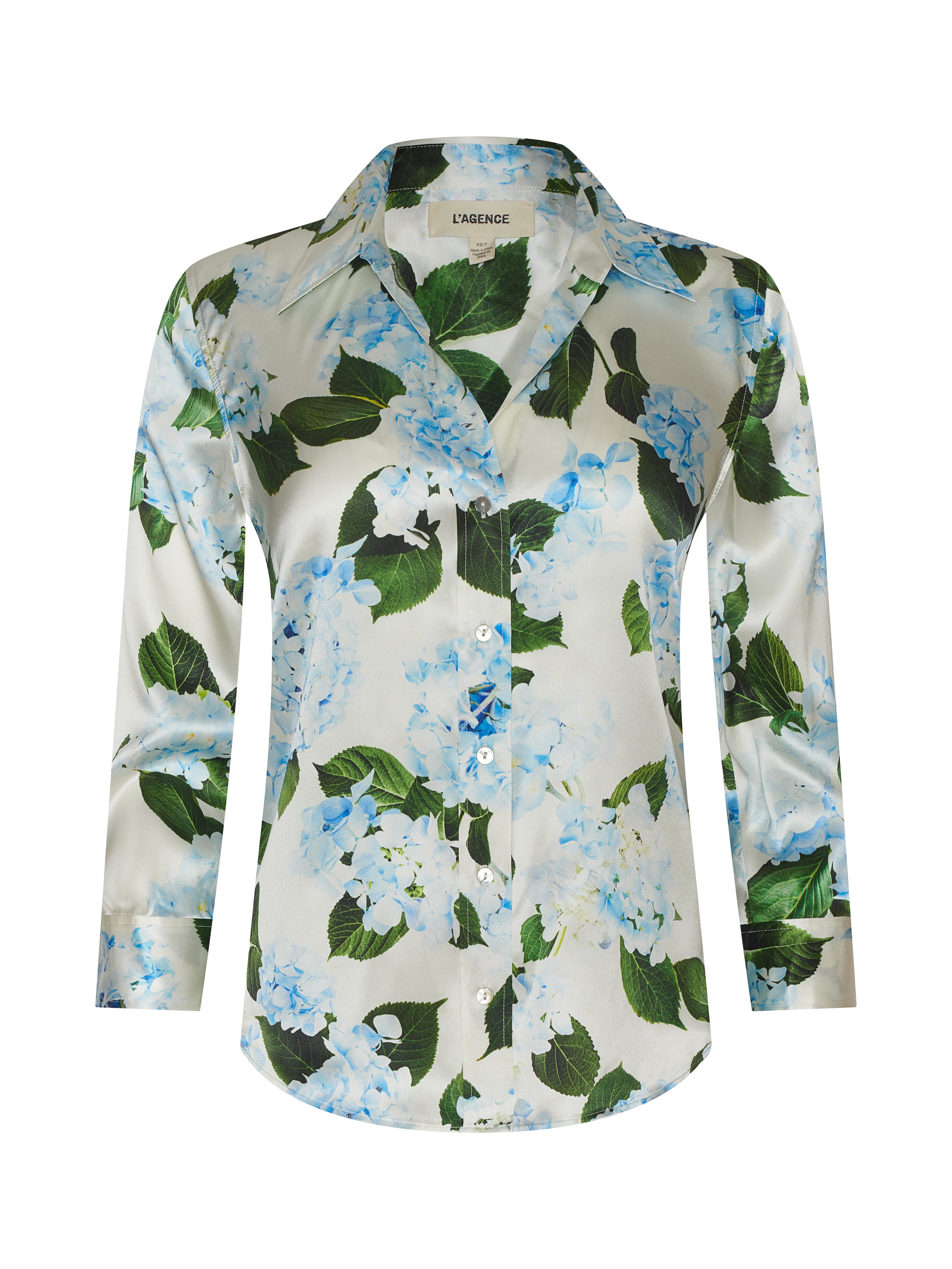 Style No. 40126HHT-ILBH DETAILS & FIT - Model Details: Height 5'9" | Bust 32" | Waist 24" | Hips 34" | Wearing Size XS - About 26" From Shoulder to Hem - Sleeve Length: 19.2" MATERIALS & CARE Composition - 100% Silk - Imported Care - Dry clean only - Do not wash - No bleach - No tumble dry - Low iron if needed