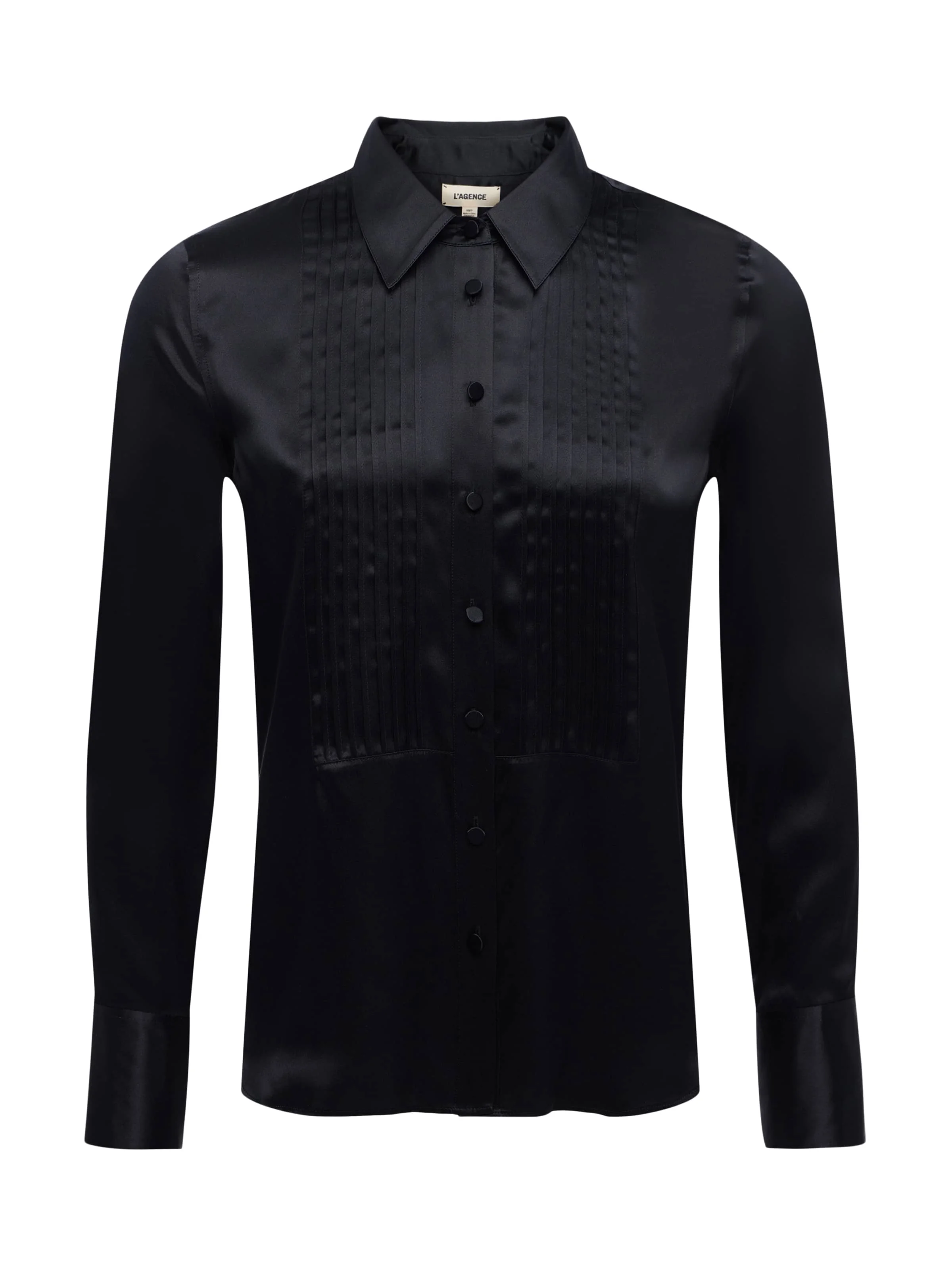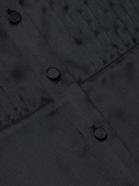 Style No. 40663CLW-BLAC DETAILS & FIT - Model Details: 5'10" | Bust 32” | Waist 23.5” | Hips 34.5” | Wearing Size XS - About 26" From Shoulder to Hem - Sleeve Length: 24.25" MATERIALS & CARE Composition - 100% Silk - Imported Care - Dry clean only - Do not wash - No bleach - No tumble dry - Low iron if needed