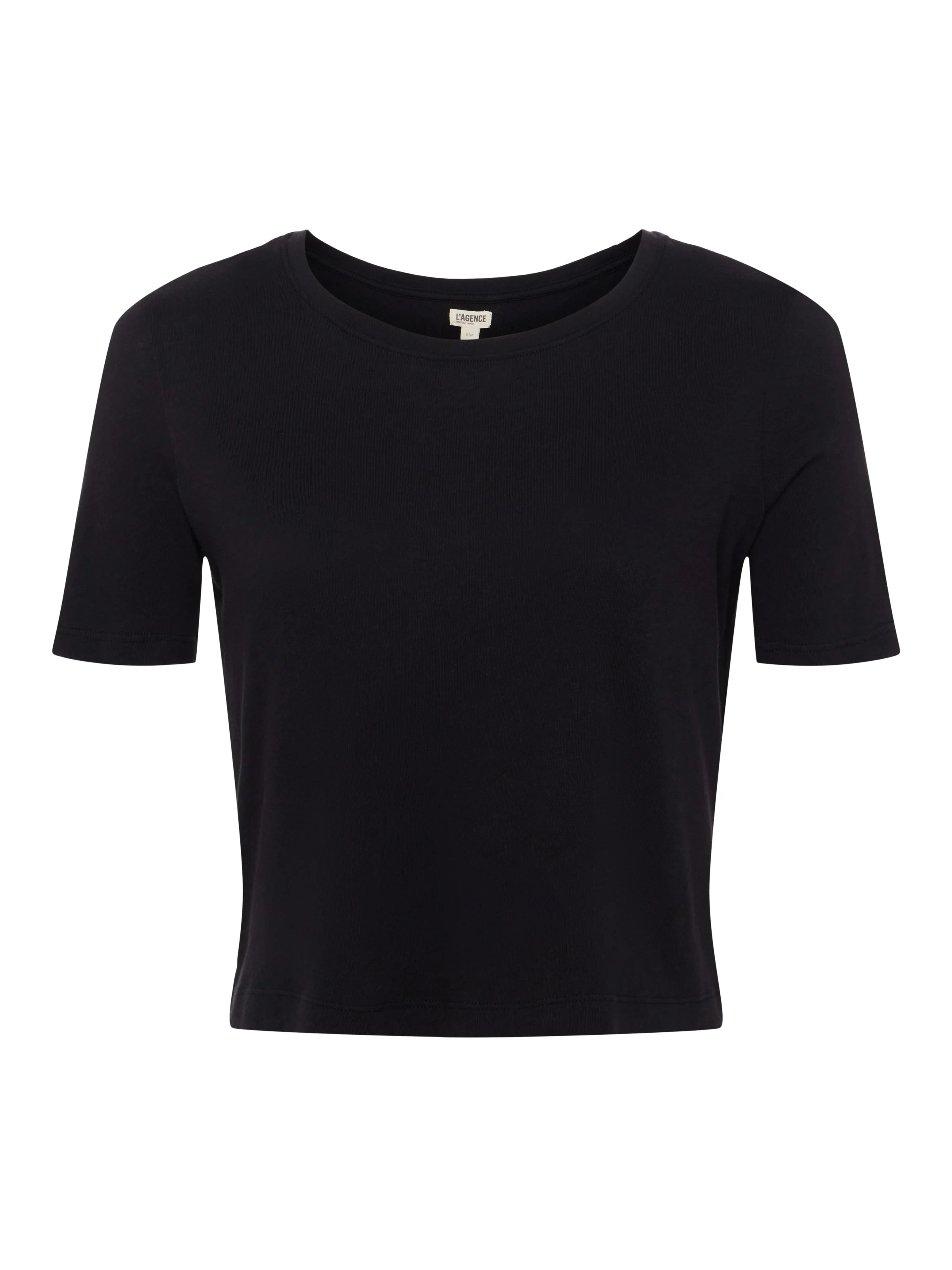 She's a warm-weather must-have, offered in soft organic cotton. The Donna cropped tee brings casual perfection to any look with her semi-relaxed fit, crew neck, and short sleeves. The perfect top for all your favorite jeans. Style No. 5768OCJ-BLAC DETAILS & FIT - Model Details: Height 5'10" | Bust 32" | Waist 24'' | Hips 34.5'' | Wearing Size XS - About 18" From Shoulder to Hem - Sleeve Length: 8" MATERIALS & CARE Composition - 100% Organic Cotton - Made in Los Angeles Care - Hand wash