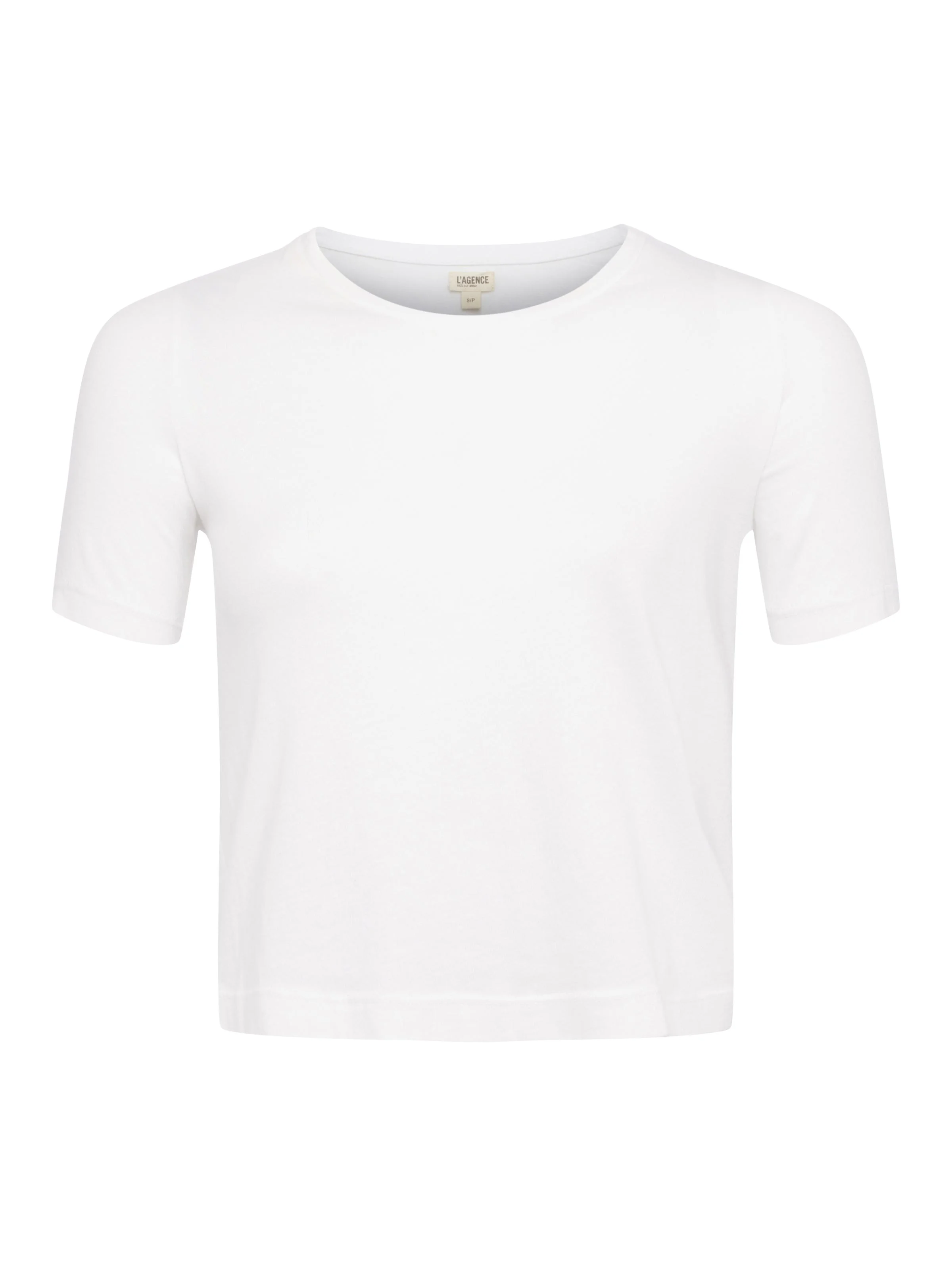 She's a warm-weather must-have, offered in pure organic cotton. The Donna cropped tee brings casual perfection to any look with her semi-relaxed fit, crew neck, and short sleeves. The perfect top for all your denim looks, try it with classic suiting for fresh professional style. Style No. 5768OCJ-WHIT DETAILS & FIT - Model Details: Height 5'10" | Bust 32" | Waist 24'' | Hips 34.5'' | Wearing Size XS - About 18" From Shoulder to Hem - Sleeve Length: 7" MATERIALS & CARE Composition - 100% Organic Cotton - Made in Los Angeles Care - Hand wash