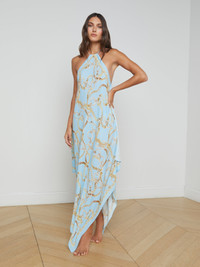 Yacht to seaside cocktails to resort—the Elise halter dress is your sophisticated upgrade from typical beachwear. Wear it as a coverup or on its own with heels. • Adjustable straps • Asymmetric hem Style No. LG5AP30-SYMC DETAILS & FIT - Model Details: Height 5'10" | Bust 32" | Waist 24" | Hips 34.5" | Wearing Size XS - About 48.6" From Top to Hem - Adjustable Straps MATERIALS & CARE Composition - 100% Viscose - Imported