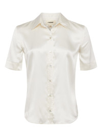 Introducing the short-sleeve version of our signature silk blouse: the Ellah. In lustrous silk charmeuse, she falls effortlessly over the figure for a flattering fit. Shirting details like a trim collar, back yoke and shirttail hem keep her timeless. Pair with denim for instantly elevated style. Style No. 40648CLW-IVOR DETAILS & FIT - Model Details: Height 5’10.5" | Bust 33" | Waist 24" | Hips 34" | Wearing Size XS - About 25.25" From Shoulder to Hem - Sleeve Length: 9.8" MATERIALS & CARE Composition - 100% Silk - Imported