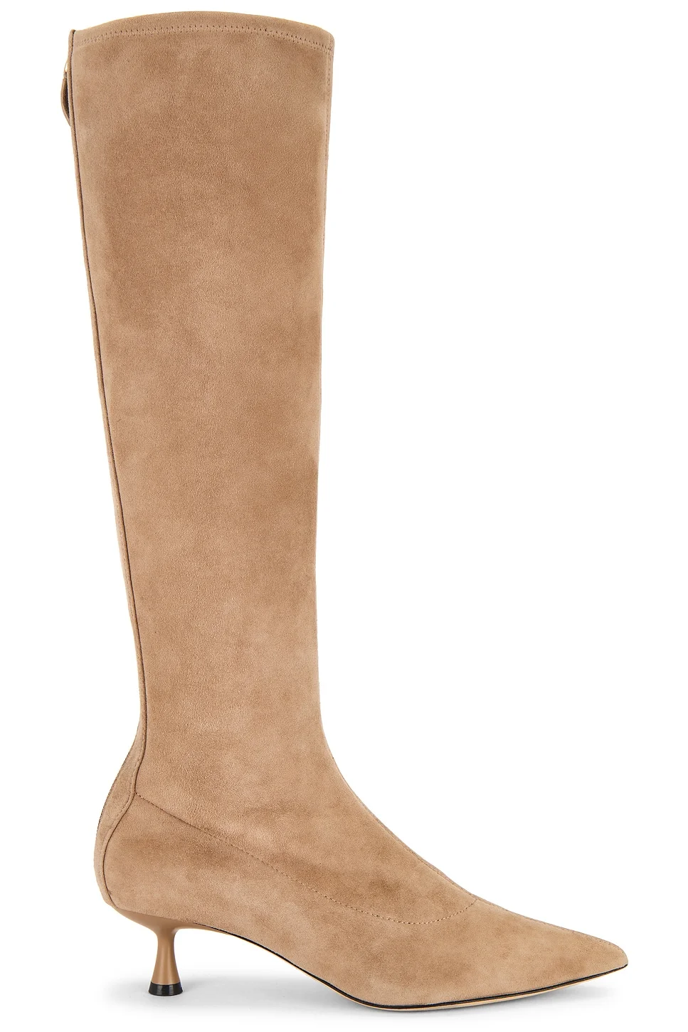 - Suede upper with leather sole - Imported - Back zipper closure - Faux leather footbed with textile lining - Pointed toe - Approx 50mm/ 2 inch heel Approx 431mm/ 17 inch shaft Shaft measures approx 17.27" in circumference - Revolve Style No. LAGR-WZ94 - Manufacturer Style No. LA1517