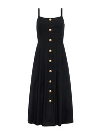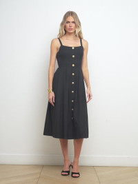 Introducing the polished pinafore dress you’ll wear all spring to summer. The Esmeralda is a warm weather essential, crafted from our crisp poplin for an easy, tailored fit. Now in true black. • Cotton poplin • Side pockets • Adjustable snap straps • Semi functional embossed dome buttons • Back zip closure Style No. 61504ZDL-BLAC DETAILS & FIT - Model Details: Height 5'10.5" | Bust 33" | Waist 24" | Hips 34" | Wearing Size 2 - About 45.5" From Shoulder to Hem MATERIALS & CARE Composition - 62% Lyocell 38% Cotton - Imported