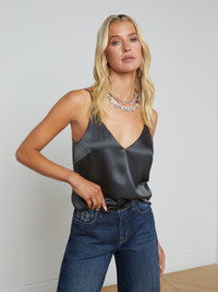 Our signature silk camisole, cut with a deeper V-neck and slimmer fit. Now in dark gray. • 100% silk charmeuse • Lined • Slim fit • V-neck • Adjustable straps Style No. 4975CLZ-DKSH DETAILS & FIT - Model Details: Height 5'9" | Bust 32" | Waist 24" | Hips 34" | Wearing Size XS - About 21.5" From Shoulder to Hem MATERIALS & CARE Composition - 100% Silk - Imported