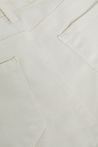 A sleek, slim bootcut, fitted through the hips and knee, built with a contoured waistband that securely hugs the natural waist without gaping. Now back in a neutral leather-look coated denim. • Super-stretch coated denim • High-rise baby bootcut • Faux front pockets • Functional back pockets • Zip fly and button closure • 34" inseam Style No. 2700PDDC-FRVC DETAILS & FIT - Model Details: Height 5'9.5" | Bust 32" | Waist 24" | Hips 35" | Wearing Size 25 - Rise: 9.75" - Inseam: 34" - Leg Opening: 17.5" MATERIALS & CARE Composition - 86% Cotton 11% Elastane 3% Spandex - Made in Los Angeles Care - Spot wash disinfect - Dry clean only