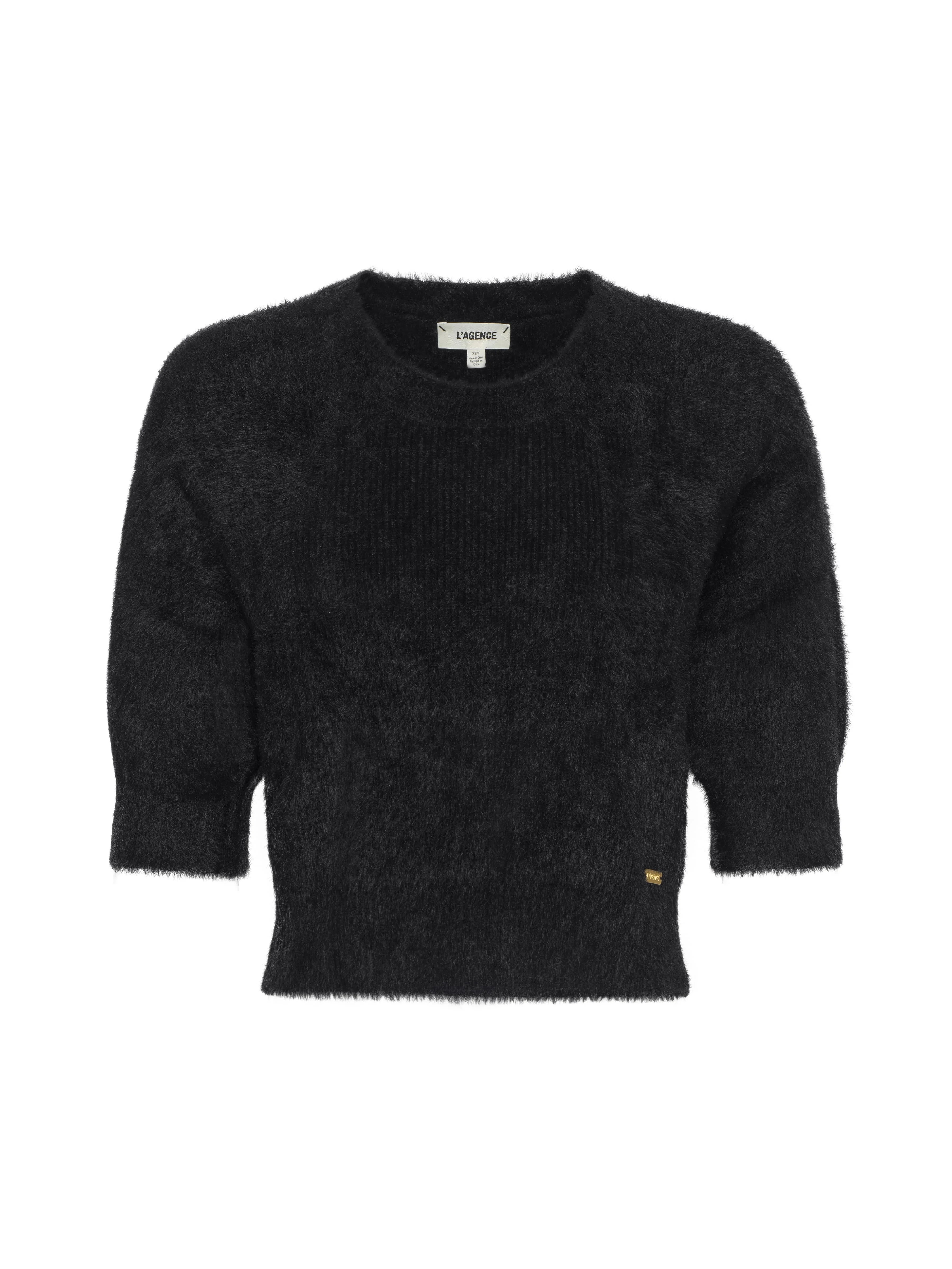 Style No. S80115FUZ3-BLAC DETAILS & FIT - Model Details: Height 5'10" | Bust 32" | Waist 23.5" | Hips 34.5" | Wearing Size XS - About 18.25" From Shoulder to Hem - Sleeve Length: 7.8" MATERIALS & CARE Composition - 100% Nylon - Imported Care - Dry clean only