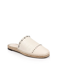 A sophisticated twist on the espadrille, the Helanor is constructed with a refined cap toe, contrasting croc-embossed and smooth leather, and metal studs for an unexpectedly edgy finish. Now in ecru. • Leather upper & lining • Rubber sole • Jute insole • Round toe Style No. 9TILA1710-ECLE DETAILS & FIT - Heel Height: 0.2" / 5mm MATERIALS & CARE Composition - 100% Calf Leather - Imported