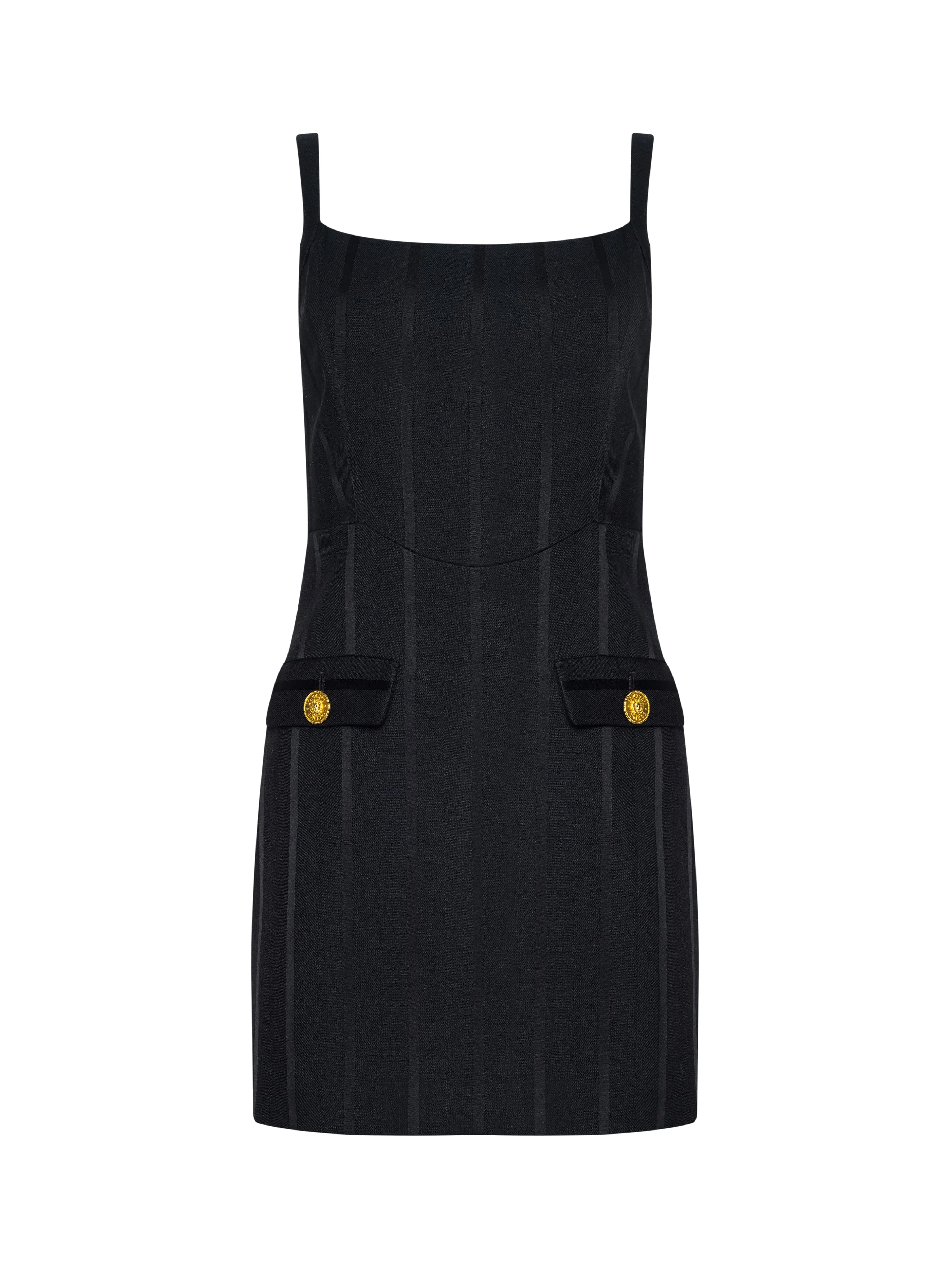Style No. 61580JMD-BLAC DETAILS & FIT - Model Details: Height 5'9.5" | Bust 32" | Waist 24" | Hips 35" | Wearing Size 2 - About 26.6" From Shoulder to Hem MATERIALS & CARE Composition - 64% Polyester 35% Viscose 1% Elastane - Imported Care - Dry clean only