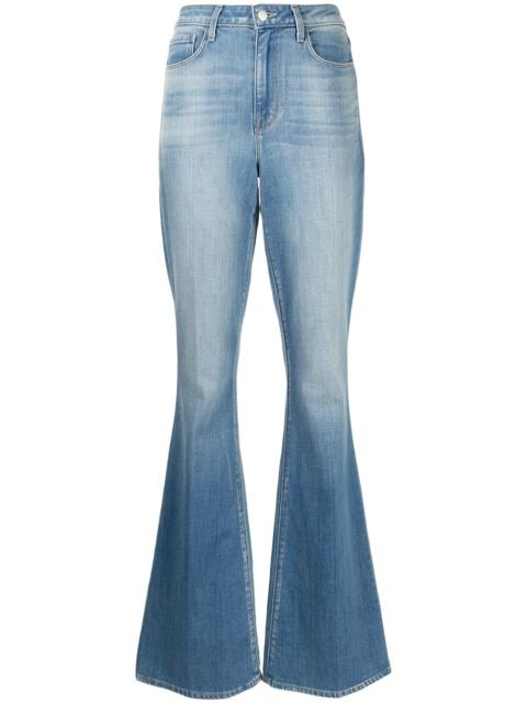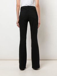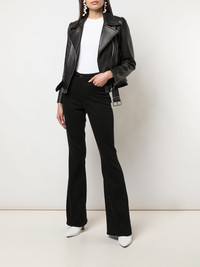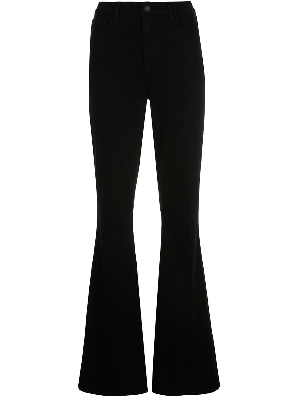 high-rise flared jeans Black cotton-blend high-rise flared jeans from L'Agence featuring a high rise, a flared style, a five pocket design, belt loops and a front fastening. Made in United States Composition Cotton 93%, Polyester 6%, Spandex/Elastane 1% SIZE & FIT Model measurements Height 5 ft 10 in(1.78 m) Bust/Chest 31.88 in(81 cm) Hips 33.85 in(86 cm) Waist 24.01 in(61 cm)