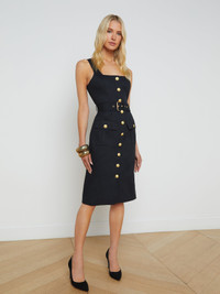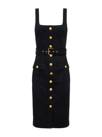 A structured fit shapes and sculpts while a waist belt cinches the look together. The Idy dress is perfect for all occasions—day to night, desk to drinks. • 100% cotton twill • Midi length • Detachable belt • Pleated flap pockets • Embossed dome button closures • Hidden side zipper Style No. 61430CTB-BLGO DETAILS & FIT - Model Details: Height 5.9" | Bust 32" | Waist 24" | Hips 34" | Wearing Size 2 - About 42.25" From Shoulder to Hem MATERIALS & CARE Composition - 100% Cotton - Imported Care - Dry clean only - Do not wash - No bleach - No tumble dry - Low iron if needed