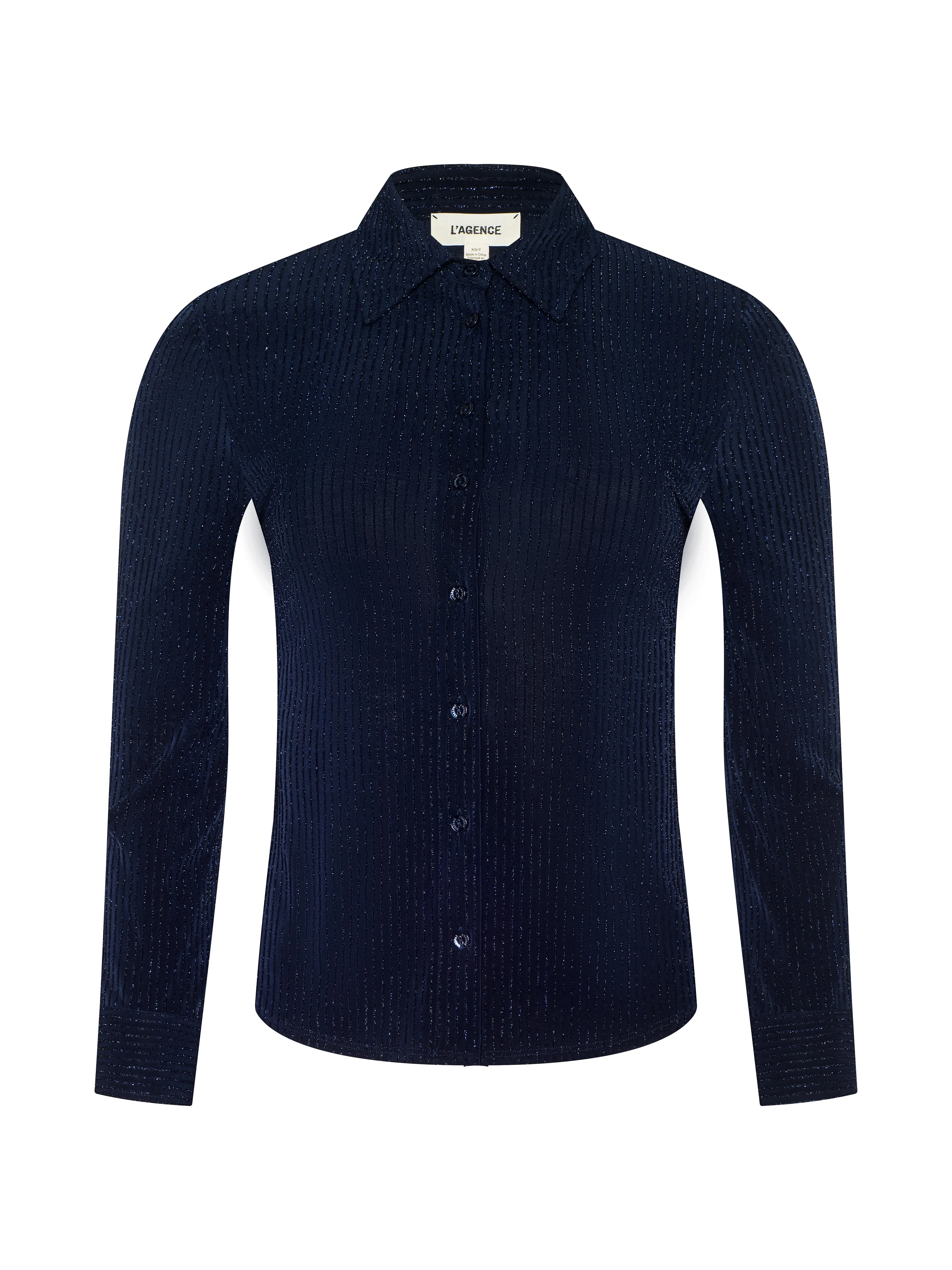 Style No. 5808ENG-MMPI DETAILS & FIT - Model Details: Height 5'9.5" | Bust 34" | Waist 24" | Hips 34" | Wearing Size XS - About 22.6" From Shoulder to Hem - Sleeve Length: 21" MATERIALS & CARE Composition - 74% Polyester 16% Metalic 10% Spandex - Imported Care - Dry clean only - Do not wash - No bleach - No tumble dry - Low iron if needed