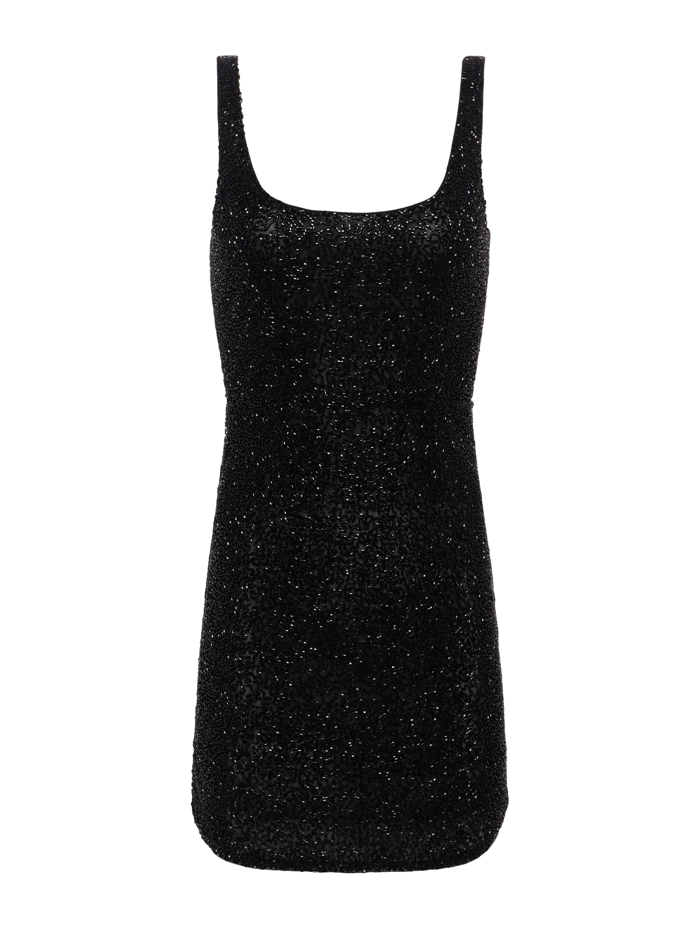 The little black dress, redefined. With a structured, defined fit and impeccable beading, our Inori mini dress is a showstopper for any event. • Beaded fabrication • Fully lined • Slim fit • Front and back U-necklines • Back invisible zip closure Style No. 61440HAX-BLAC DETAILS & FIT - Model Details: Height 5’10" | Bust 34” | Waist 24" | Hips 35” | Wearing Size 2 - About 32.6" From Shoulder to Hem MATERIALS & CARE Composition - 100% Nylon Base 100% Polyester Sequin Embellishment - Imported Care - Dry clean only