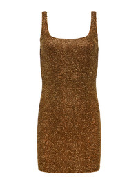 Style No. 61440HAX-ANGL DETAILS & FIT - Model Details: 5'10" | Bust 32” | Waist 23.5” | Hips 34.5” | Wearing Size 2 - About 32.6" From Shoulder to Hem MATERIALS & CARE Composition - 100% Nylon Base 100% Polyester Sequin Embellishment - Imported