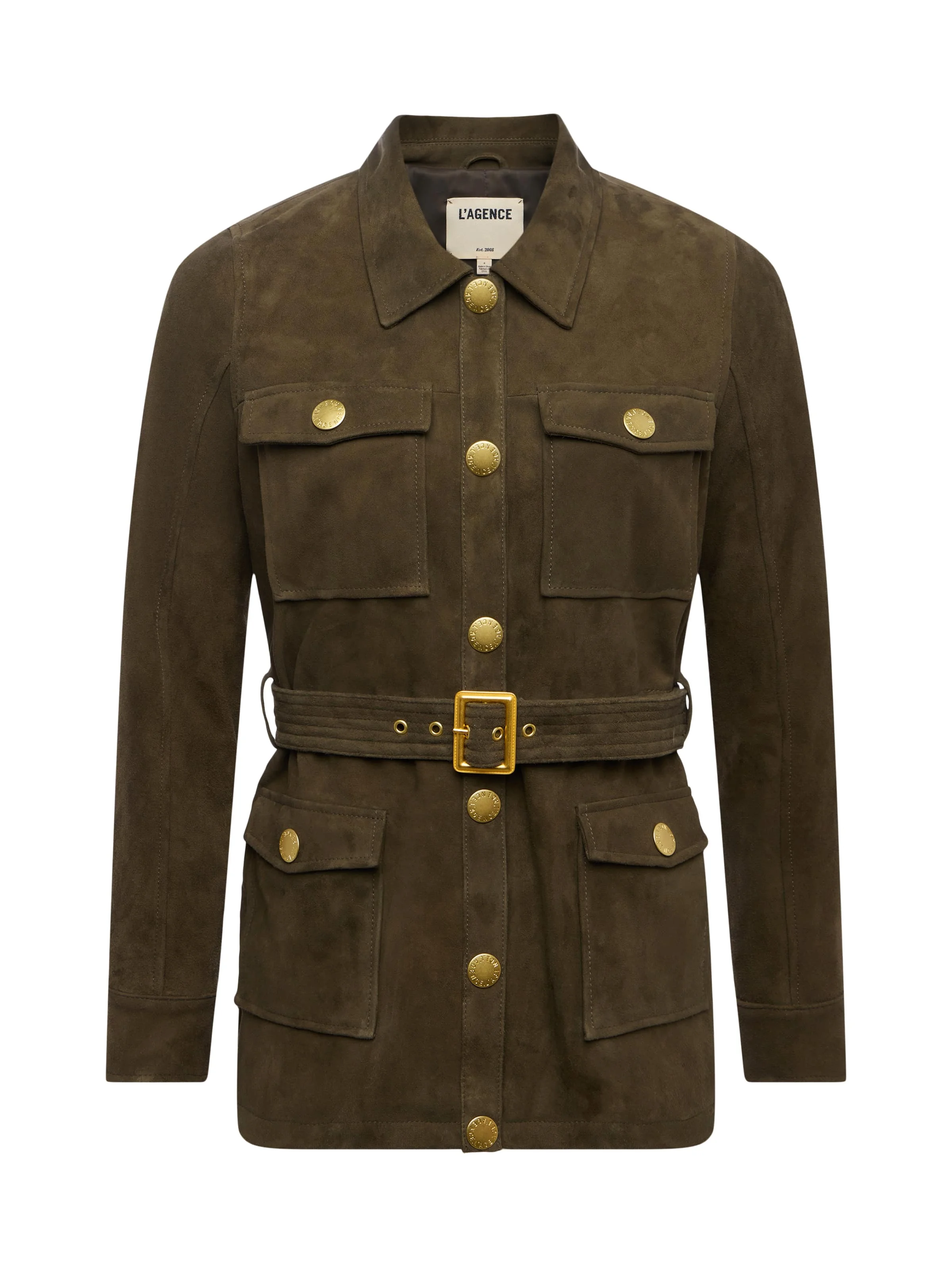 Style No. 1942FWT-OLVE DETAILS & FIT - Model Details: Height 5'10" | Bust 32" | Waist 23.5" | Hips 34.5" | Wearing Size 2 - About 27.75" From Shoulder to Hem - Sleeve Length: 23.25" MATERIALS & CARE Composition - 100% Goatskin - Imported Care - Dry clean only with leather professional