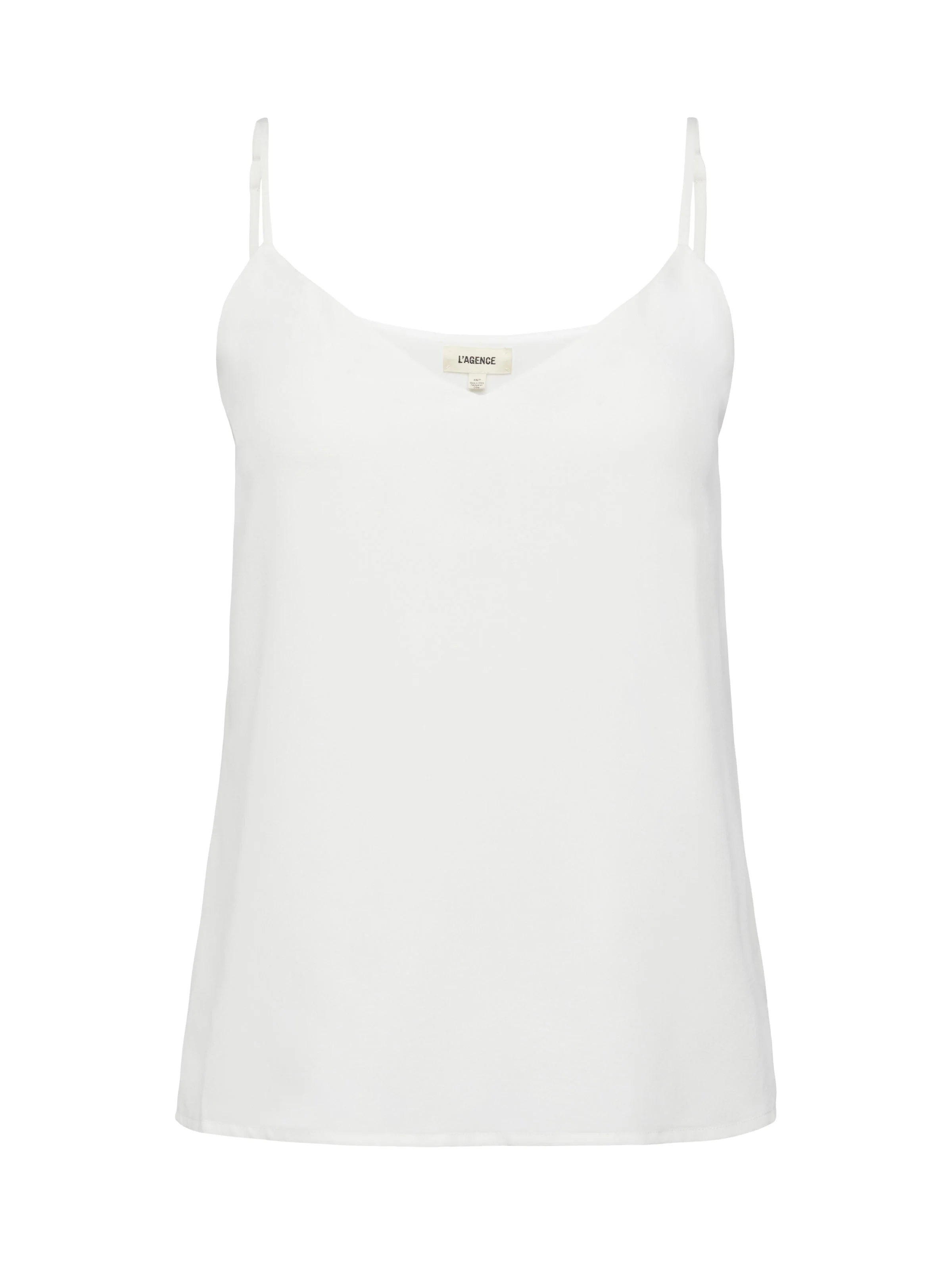 An ivory camisole with a soft matte finish. The relaxed shape drapes from a gentle v-neckline, secured by adjustable spaghetti straps. Constructed using two layers of silk for complete coverage. Style No. 4713CDC-IVOR DETAILS & FIT - Model Details: Height: 5' 8'’ | Bust 32” | Waist 23" | Hips 34” | Wearing Size XS - About 18.3" From Shoulder to Hem MATERIALS & CARE Composition - 100% Silk - Imported Care - Dry clean only - Do not wash - No bleach - No tumble dry - Low iron if needed