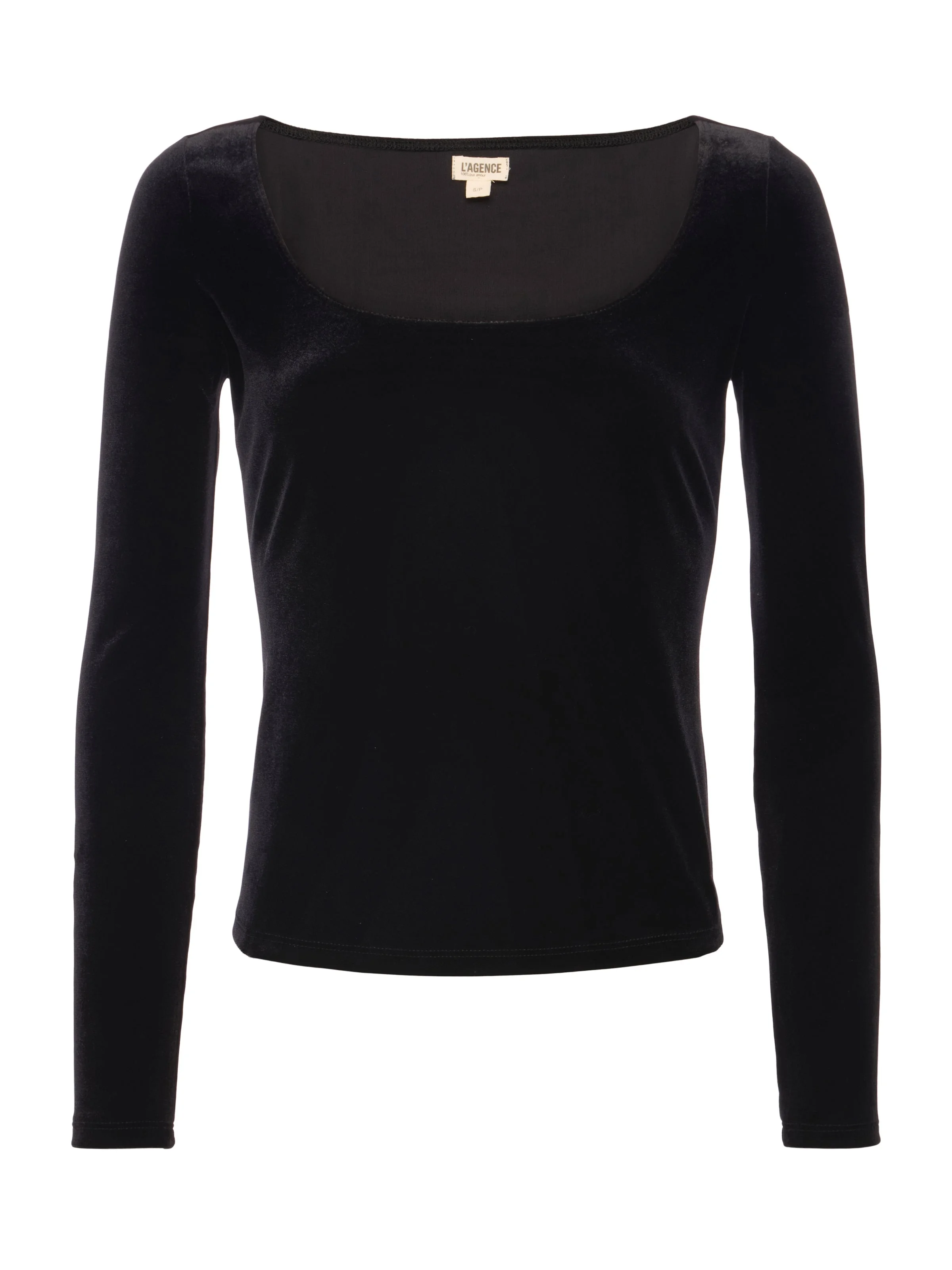 A ballet-inspired wide U-neck adds understated elegance to the Jelena top. • Stretch velvet • Slim fit • Wide U-neck Size tip: If you prefer a more relaxed fit through the arms, we recommend sizing up. Style No. 5794FUW-BLAC DETAILS & FIT - Model Details: Height 5'10" | Bust 32" | Waist 24" | Hips 34.5" | Wearing Size XS - About 22" From Shoulder to Hem - Sleeve Length: 24" MATERIALS & CARE Composition - 90% Polyester 10% Spandex - Made in Los Angeles