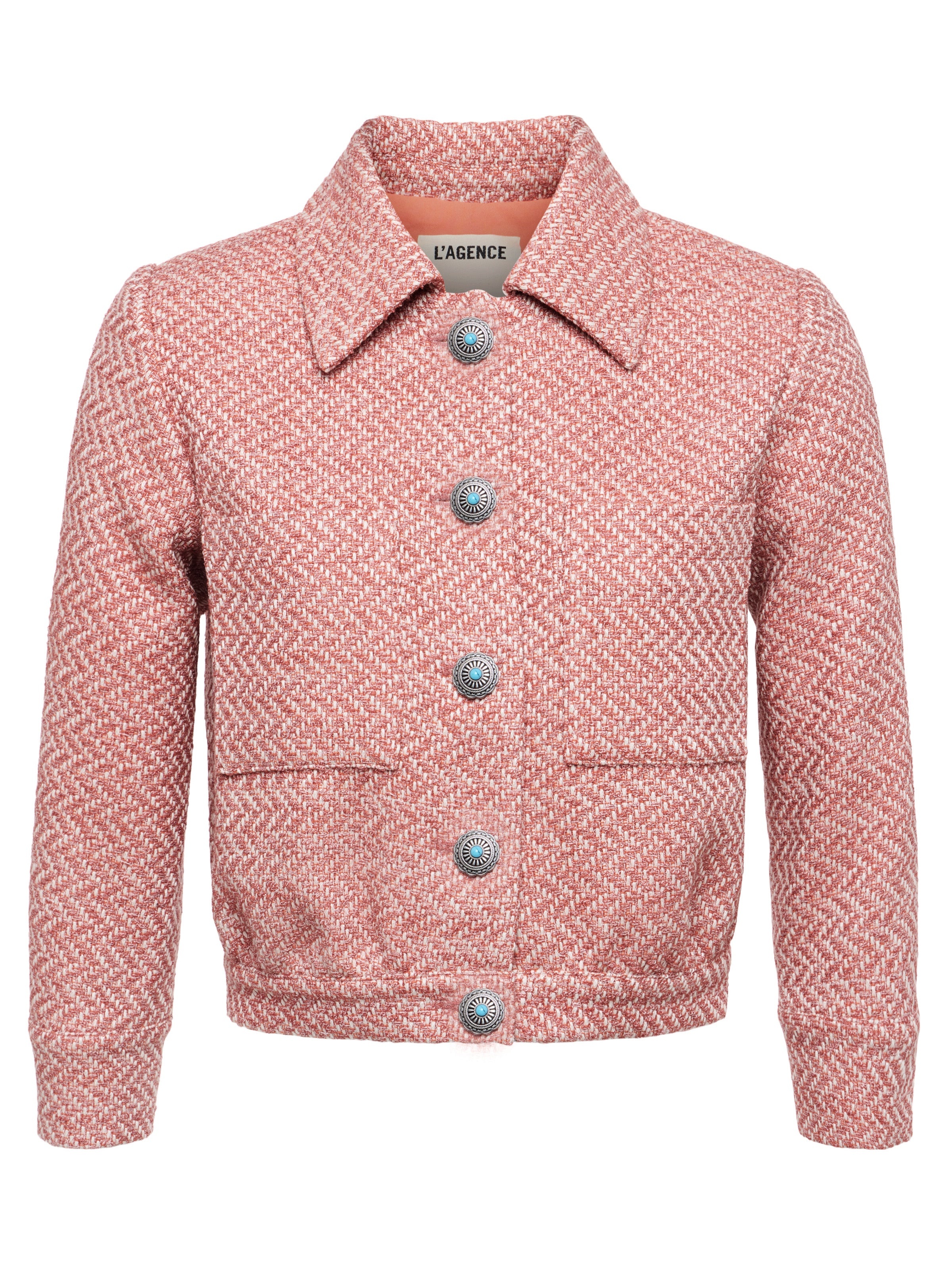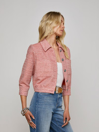 A ladylike, three-quarter sleeve jacket meets a textured chevron tweed. Wear the Jia as a top or second layer. • Chevron tweed • Patch pockets • 3/4 length sleeves • Novel button closures Style No. 1884GTL-BSAS DETAILS & FIT - Model Details: Height 5'9" | Bust 32" | Waist 24" | Hips 34" | Wearing Size 3 - About 19.25" From Shoulder to Hem - Sleeve Length: 18.25" MATERIALS & CARE Composition - 45% Cotton 28% Acrylic 27% Polyester - Imported Care - Dry clean only