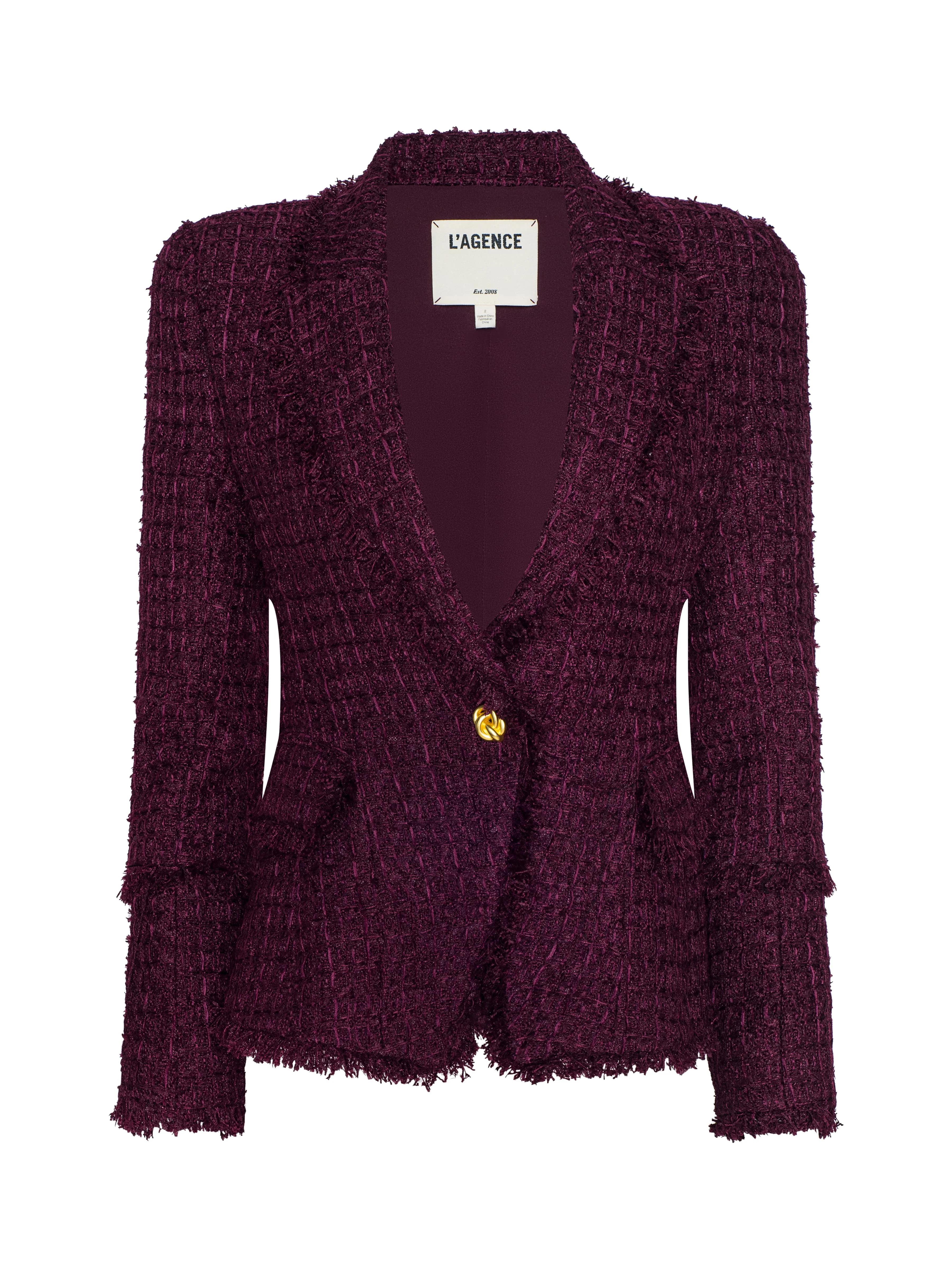 Style No. 1907QKM2-DKPO DETAILS & FIT - Model Details: Height 5'9.5" | Bust 34" | Waist 24" | Hips 34" | Wearing Size 2 - About 25.75" From Shoulder to Hem - Sleeve Length: 25" MATERIALS & CARE Composition - 100% Polyester - Imported Care - Dry clean only
