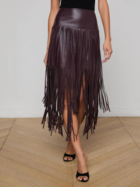 Style No. S3393ZST-DMLB DETAILS & FIT - Model Details: Height 5'10" | Bust 32” | Waist 23.5” | Hips 34.5” | Wearing Size 2 - About 16" From Waist to Hem - About 39.5" From Waist to Hem, including Fringe MATERIALS & CARE Composition - 50% Polyurethane 50% Polyester - Imported Care - Dry clean only
