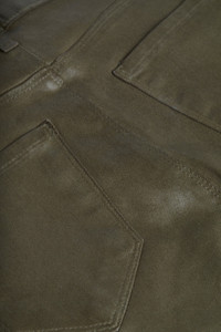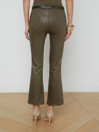 Kendra is the perfect wear-now option for petites and cropped-flare lovers—no tailoring required. • Leather-look coated denim • High-rise cropped flare • Front faux pockets • Functional back pockets • Raw hem • Zip fly and button closure • 26” inseam • Made in L.A. Style No. 2714PDDC-PIWC DETAILS & FIT - Model Details: Height 5’10" | Bust 34” | Waist 24" | Hips 35” | Wearing Size 25 - Rise: 9.5" - Inseam: 26" - Leg Opening: 17" MATERIALS & CARE Composition - 86% Cotton 11% Elastane 3% Spandex - Made in Los Angeles Care - Spot wash disinfect - Dry clean only