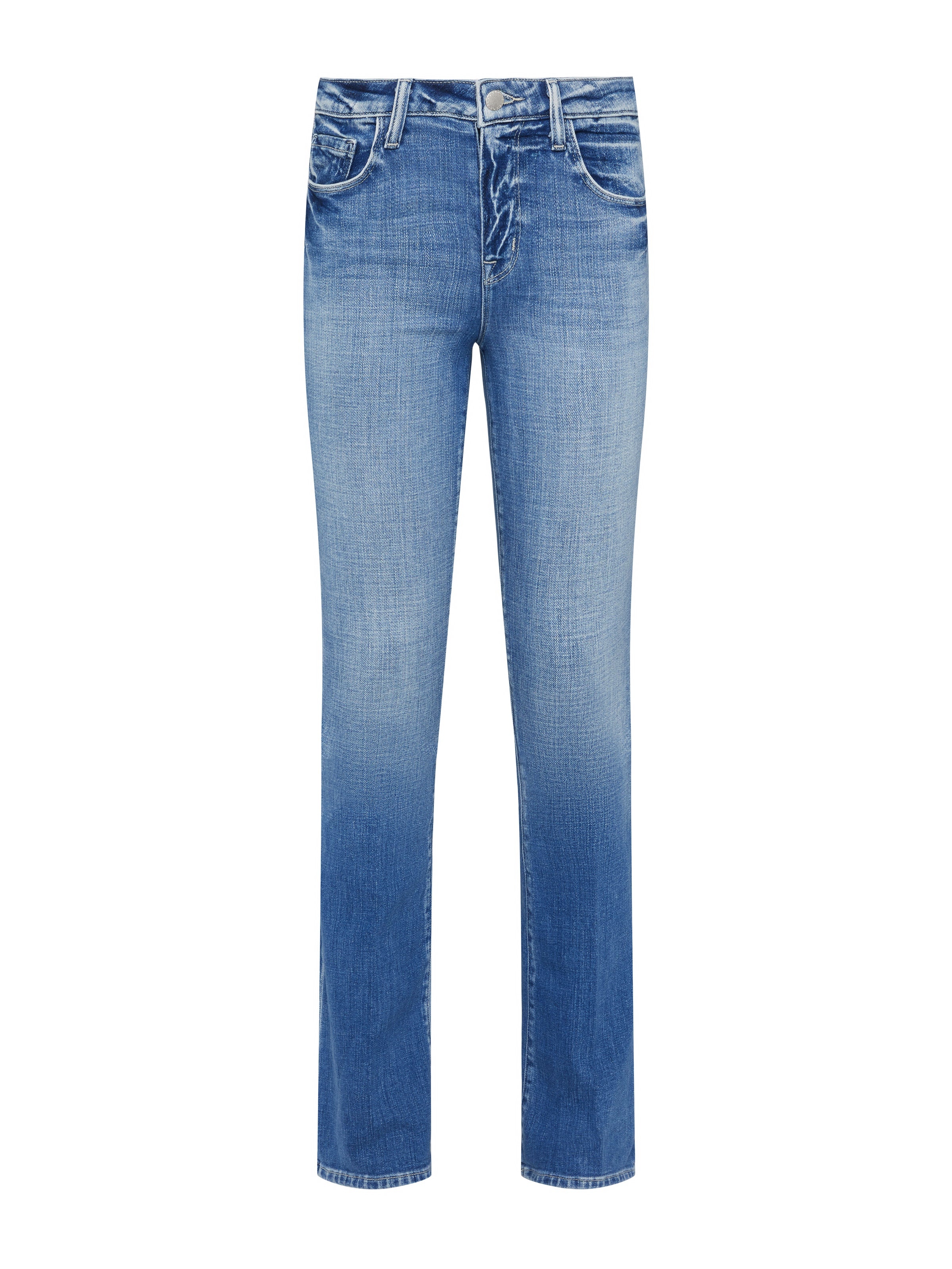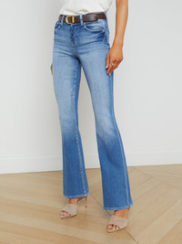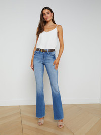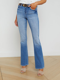 A classic high-rise jean in light-blue subtle stretch denim. Meticulous sanding and whiskering enhance fabric's character. Contoured waistband fits securely at the natural waist, then hugs from hip to knee before releasing into a slim bootcut hem. Subtle-stretch denim holds its shape, smoothing the figure without sacrificing comfort. Five-pocket construction with a front zip fly closure. Style No. 2700RDM-BALB DETAILS & FIT - Model Details: Height: 5'10" | Bust: 32" | Waist: 24'' | Hips: 34.5'' | Wearing Size 25 - Rise: 9.75" - Inseam: 34" - Leg Opening: 17.5" MATERIALS & CARE Composition - 94% Cotton 5% Polyester 1% Spandex - Made in Los Angeles Care - Machine wash