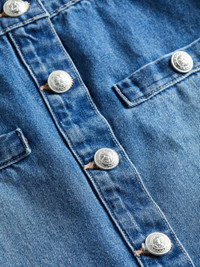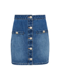 Just in: a versatile four-season miniskirt in a classic blue wash. The all-cotton denim Kris hugs the natural waist before falling straight to high thigh. Featuring a button-front with welt accents that lend a smart sophistication, and our signature embossed dome buttons. For warm days wear with a tee and sandals or sneakers. Slip on tall boots and a turtleneck when the weather turns cool and crisp. Style No. 3429YRO-HILM DETAILS & FIT - Model Details: Height 5'10" | Bust 32" | Waist 24'' | Hips 34.5'' | Wearing Size XS - About 15.5" From Waist to Hem MATERIALS & CARE Composition - 100% Cotton - Made in Los Angeles Care - Machine wash