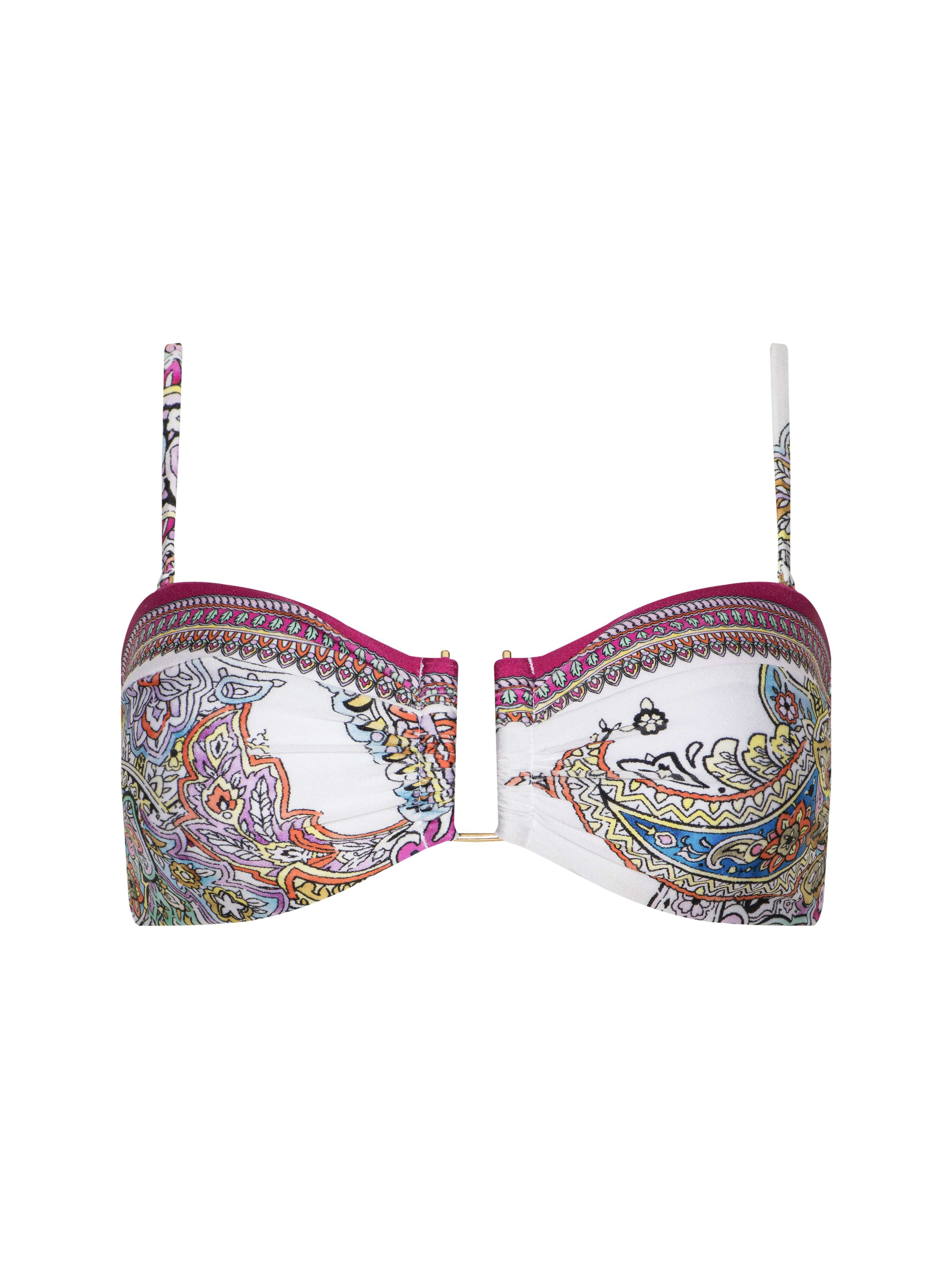 Designed with fully removable straps, the Krysta bikini top can be worn with straps for a secure fit or without for a sexy bandeau option. Now in paisley. • Four-way stretch nylon • Removable cups • Removable & adjustable straps Style No. LG5TB81-MULT DETAILS & FIT - Model Details: Height 5'10" | Bust 32" | Waist 24" | Hips 34.5" | Wearing Size XS MATERIALS & CARE Composition - 80% Nylon 20% Elastane - Imported Care - Hand wash