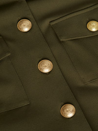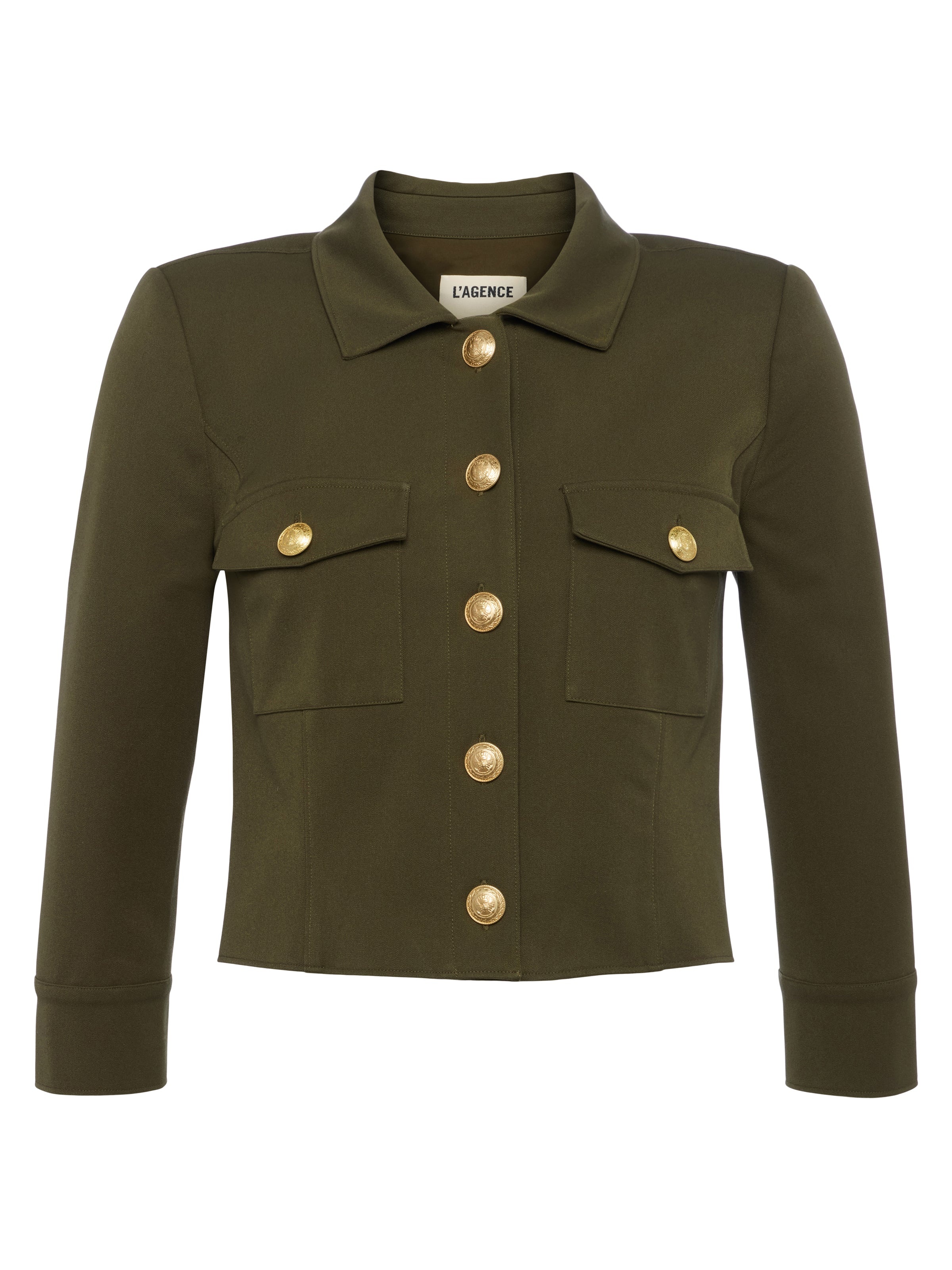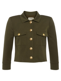 Our versatile, modern update to the classic three-quarter sleeve jacket. Wear it as a top or second layer. Now in dark green. • Midweight stretch suiting • Lined • Strong shoulders • Patch pockets • 3/4 sleeves • Embossed dome buttons Style No. 1769NGX-IVGN DETAILS & FIT - Model Details: Height 5'9" | Bust 32" | Waist 24" | Hips 34" | Wearing Size 2 - About 19.25" From Shoulder to Hem - Sleeve Length: 18.8" MATERIALS & CARE Composition - 68% Polyester 29% Rayon 3% Spandex - Imported Care - Dry clean only - Do not wash - No bleach - No tumble dry - Low iron if needed