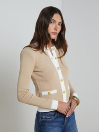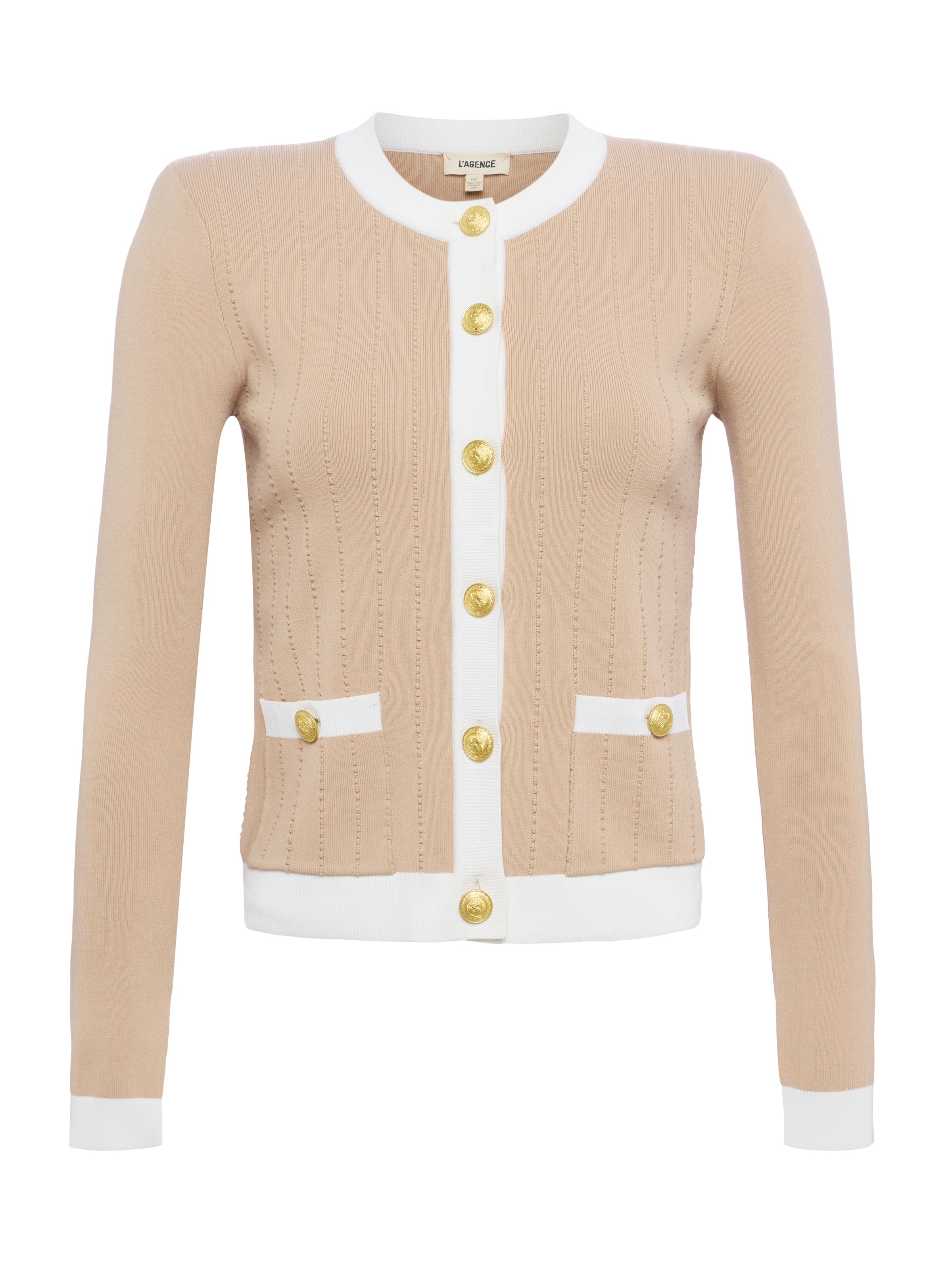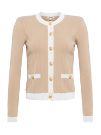 Classic polish, with a Parisian feel. Worn as a top or cardigan, the Leon is a wardrobe staple. • Lightweight knit jersey fabric • Strong shoulders • Two patch pockets • Contrast trim • Embossed dome button closure Style No. S8917NXT2-BCWT DETAILS & FIT - Model Details: Height 5'10" | Bust 32" | Waist 24'' | Hips 34.5'' | Wearing Size XS - About 21" From Shoulder to Hem - Sleeve Length: 23.5" MATERIALS & CARE Composition - 80% Rayon 18% Nylon 2% Spandex - Imported Care - Dry clean only