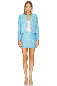 - 100% polyester - Made in China - Spot clean only - Double lined - Hidden back zipper closure - Lightweight sequin embellished fabric - Skirt measures approx 14.25" in length - Revolve Style No. LAGR-WQ33 - Manufacturer Style No. 3404BJV2