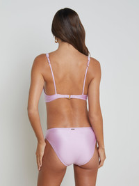 Our classic secure-fit bikini top, now in a lovely light violet. • Four-way stretch nylon • Removable cups • Adjustable straps • Back clasp closure Style No. LG5AG83-LIVI DETAILS & FIT - Model Details: Height 5'10" | Bust 32" | Waist 24" | Hips 34.5" | Wearing Size XS - Adjustable Straps - Removable Cups MATERIALS & CARE Composition - 80% Nylon 20% Elastane - Imported Care - Hand wash