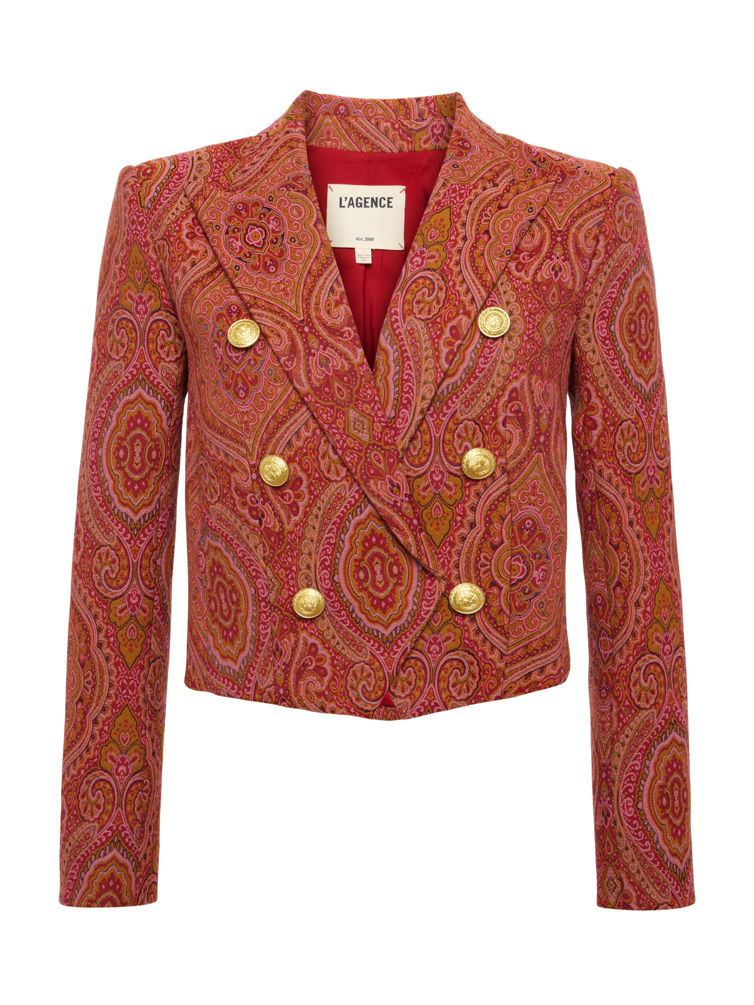 Crafted in partnership with a family-owned mill in Lyon, France, this refined paisley print was inspired by their centuries-old antique library. • French jacquard • Fully lined • No closures • Strong shoulder • Embossed dome buttons Style No. 1743NKT-BOUP DETAILS & FIT - Model Details: Height 5'9" | Bust 30" | Waist 24" | Hips 34" | Wearing Size 2 - About 22.4" From Shoulder to Hem - Sleeve Length: 24.2" MATERIALS & CARE Composition - 43% Polyester 30% Nylon 27% Cotton - Imported