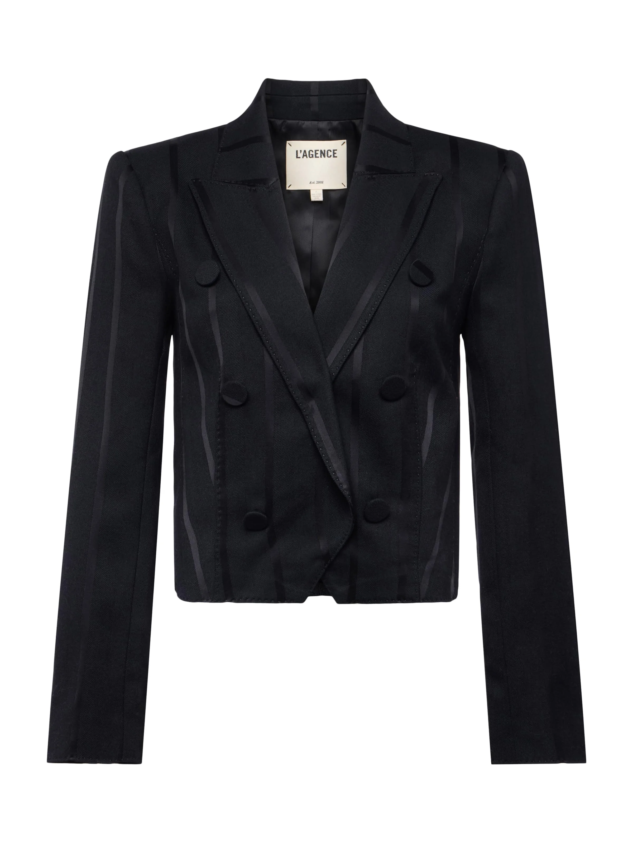 Style No. 1743JMD-BLAC DETAILS & FIT - Model Details: Height 5'9.5" | Bust 32" | Waist 24" | Hips 35" | Wearing Size 2 - About 22.4" From Shoulder to Hem - Sleeve Length: 24.3" MATERIALS & CARE Composition - 64% Polyester 35% Viscose 1% Elastane - Imported Care - Dry clean only