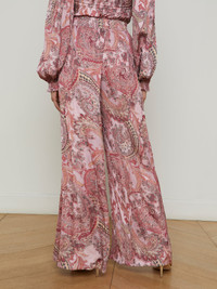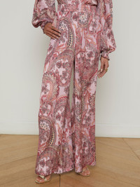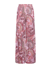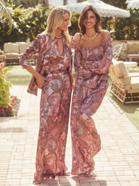 Defined by its elegant drape and flow, our ultra-wide Lillian pant is back in a gorgeous mauve paisley. • Crinkle satin • Elastic waistband • Slant pockets • No closures Style No. 2616KEX-MMFP DETAILS & FIT - Model Details: Height 5'9" | Bust 32" | Waist 24" | Hips 34" | Wearing Size XS - Rise: 13" - Inseam: 31.5" - Leg Opening: 16" MATERIALS & CARE Composition - 100% Polyester - Imported