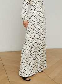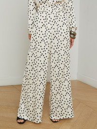 Defined by elegant drape and flow, our timeless ultra-wide Lillian pant is back in a playful polka dot print. • Crinkle satin • Elastic waistband • Slant pockets • No closures • 31.5" inseam Style No. 2616PFU-EBPD DETAILS & FIT - Model Details: Height 5'9" | Bust 30" | Waist 24" | Hips 34" | Wearing Size XS - Rise: 13" - Inseam: 31.5" - Leg Opening: 16" MATERIALS & CARE Composition - 100% Polyester - Imported Care - Dry clean only - Do not wash - No bleach - No tumble dry - Low iron if needed