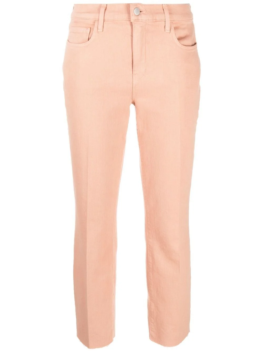 low-waist cropped jeans salmon pink cotton blend low-rise belt loops front button fastening classic five pockets tapered leg Made in United States Composition Outer: Cotton 93%, Polyester 6%, Spandex/Elastane 1% Lining: Polyester 65%, Cotton 35% SIZE & FIT Model measurements Height 5 ft 10 in(1.78 m) Bust/Chest 33.07 in(84 cm) Hips 35.82 in(91 cm) Waist 25.98 in(66 cm) FittingInformation This piece fits true to size. We recommend you get your regular size Cut for a slim fit Made with a mid-weight stretch fabric